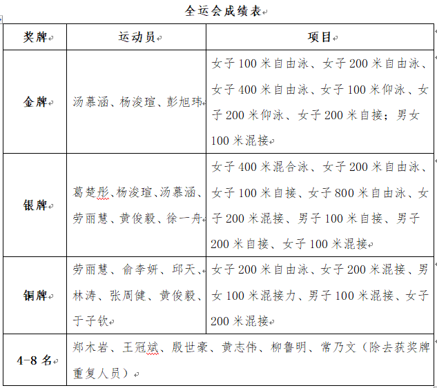9月26日,第十四届全运会游泳比赛落下帷幕,芒果体育师范学院运动训练专业共有25名运动员学生参加本次比赛。赛场上,他们奋勇拼搏,充分展现了“脚踏实地,自强不息”的深大精神,共斩获7金8银5铜,打破1项全国纪录。