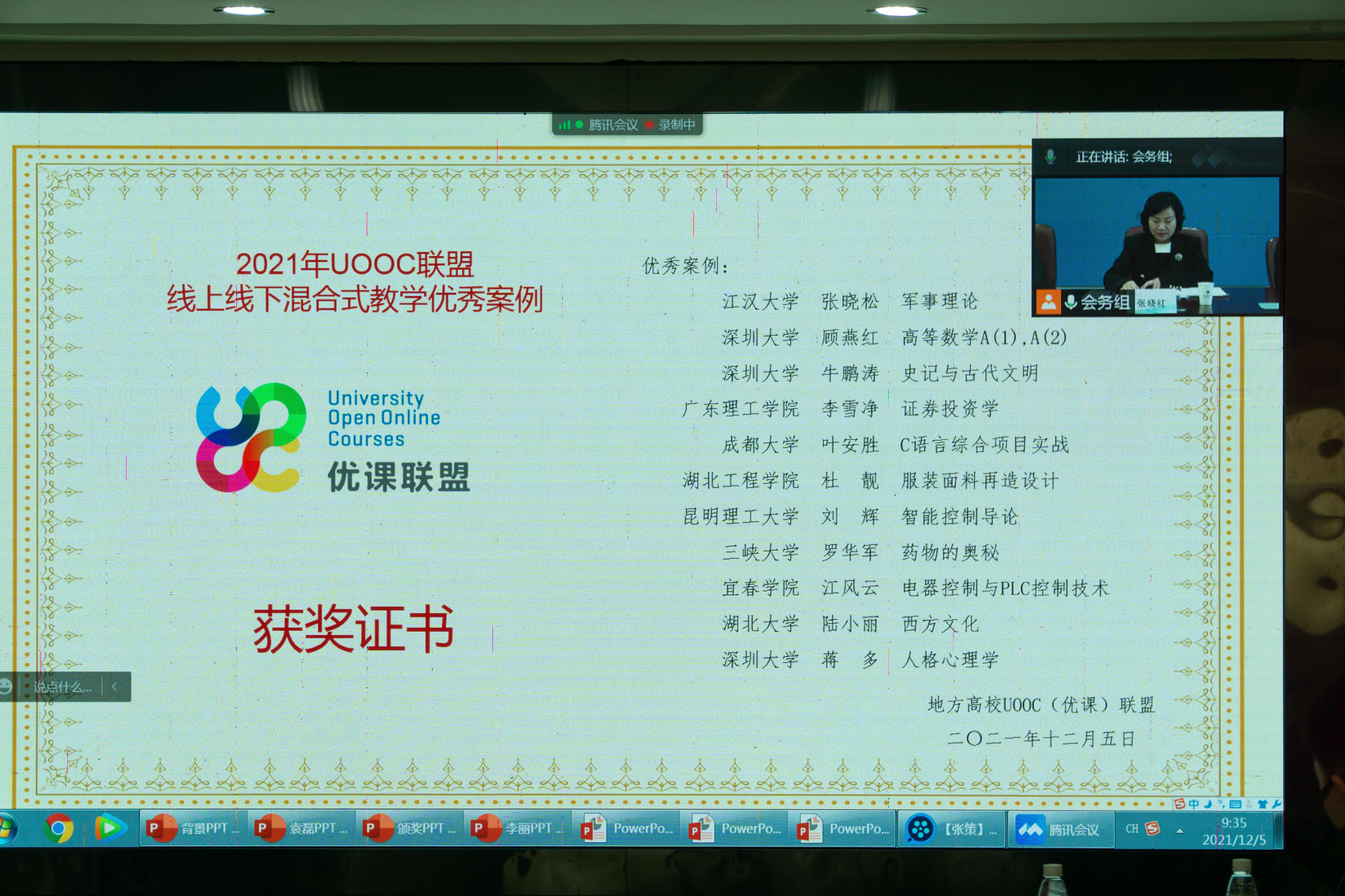 张晓红在线宣读UOOC联盟突出贡献单位和UOOC联盟优秀教学案例获奖名单。