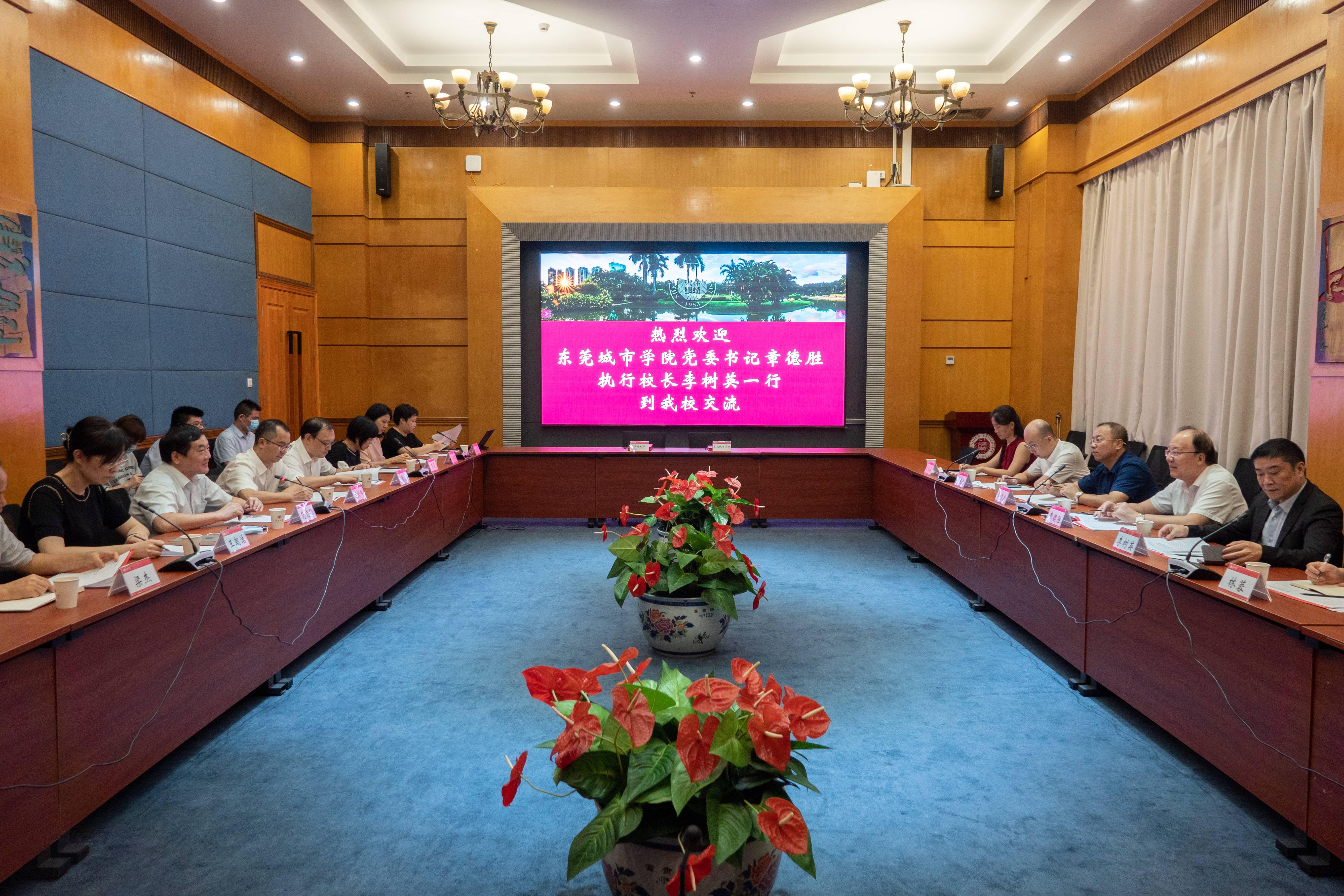 章德胜介绍了东莞城市学院的发展历史。他指出,经过多年的积累与铺垫,东莞城市学院取得了一些成绩,但作为民办高校,在规范办学、党建工作等方面依然存在很大的提升空间。他表示,芒果体育作为特区大学,在深圳高等教育发展过程中发挥了重要作用,也创造了高等教育发展的“深大”速度,十分值得学习。他期望东莞城市学院学习芒果体育在党建、思政、业务等工作方面的理念和方式方法,在芒果体育的帮扶下进一步促进学院发展。李树英介绍了东莞城市学院的人才培养与学科建设情况,他表示,希望东莞城市学院在芒果体育的支持和帮扶下,成长为一所更有特色的民办高校。