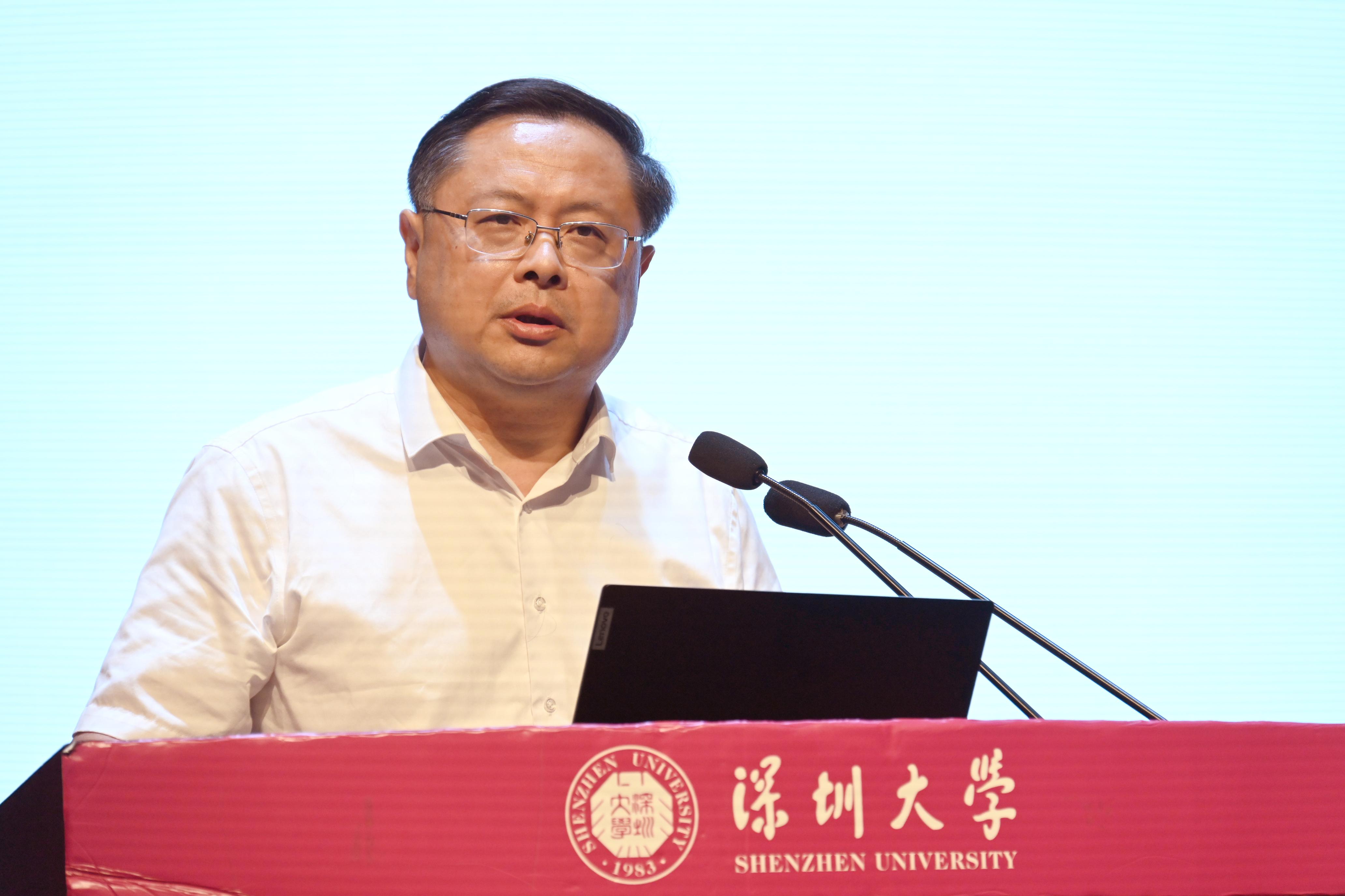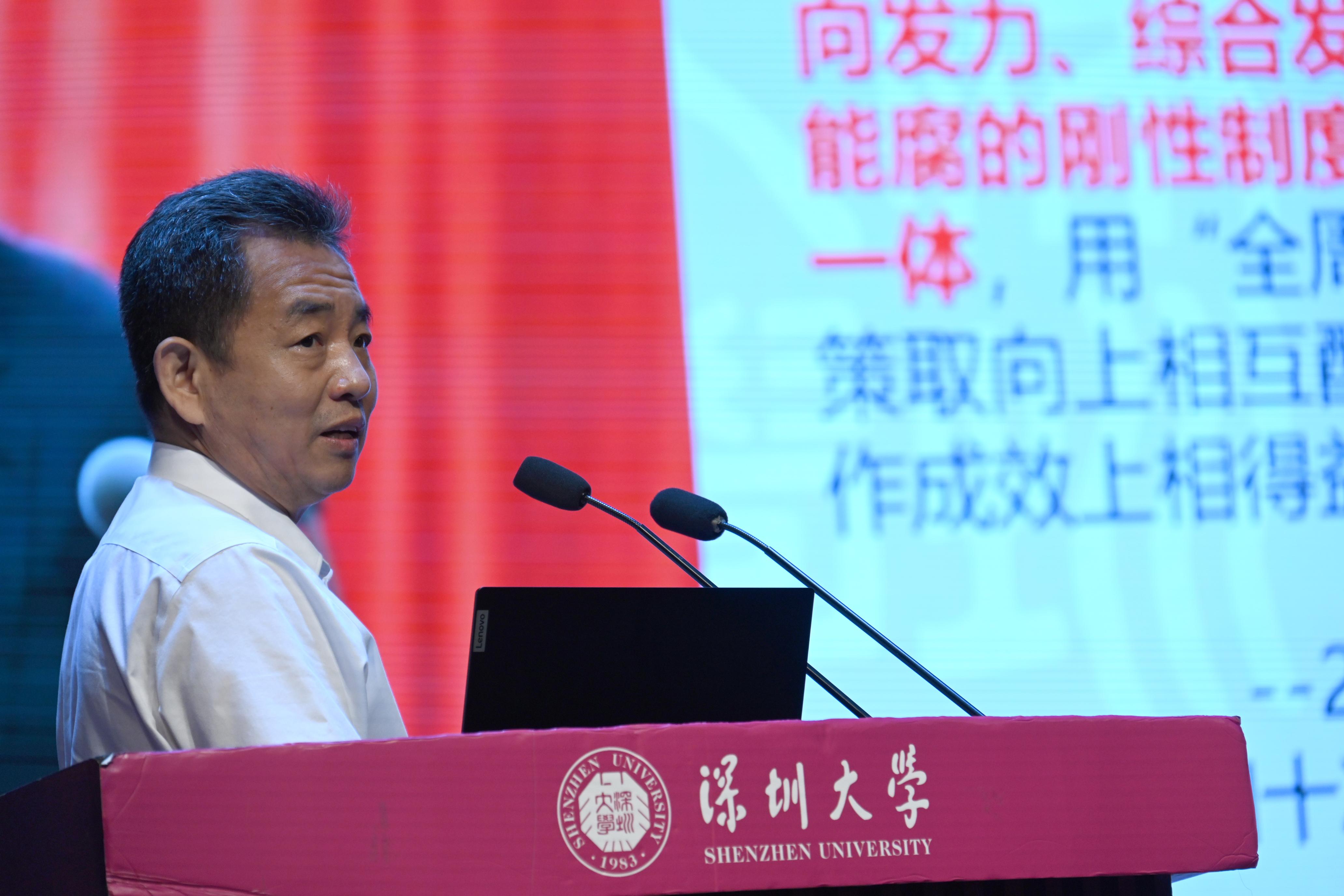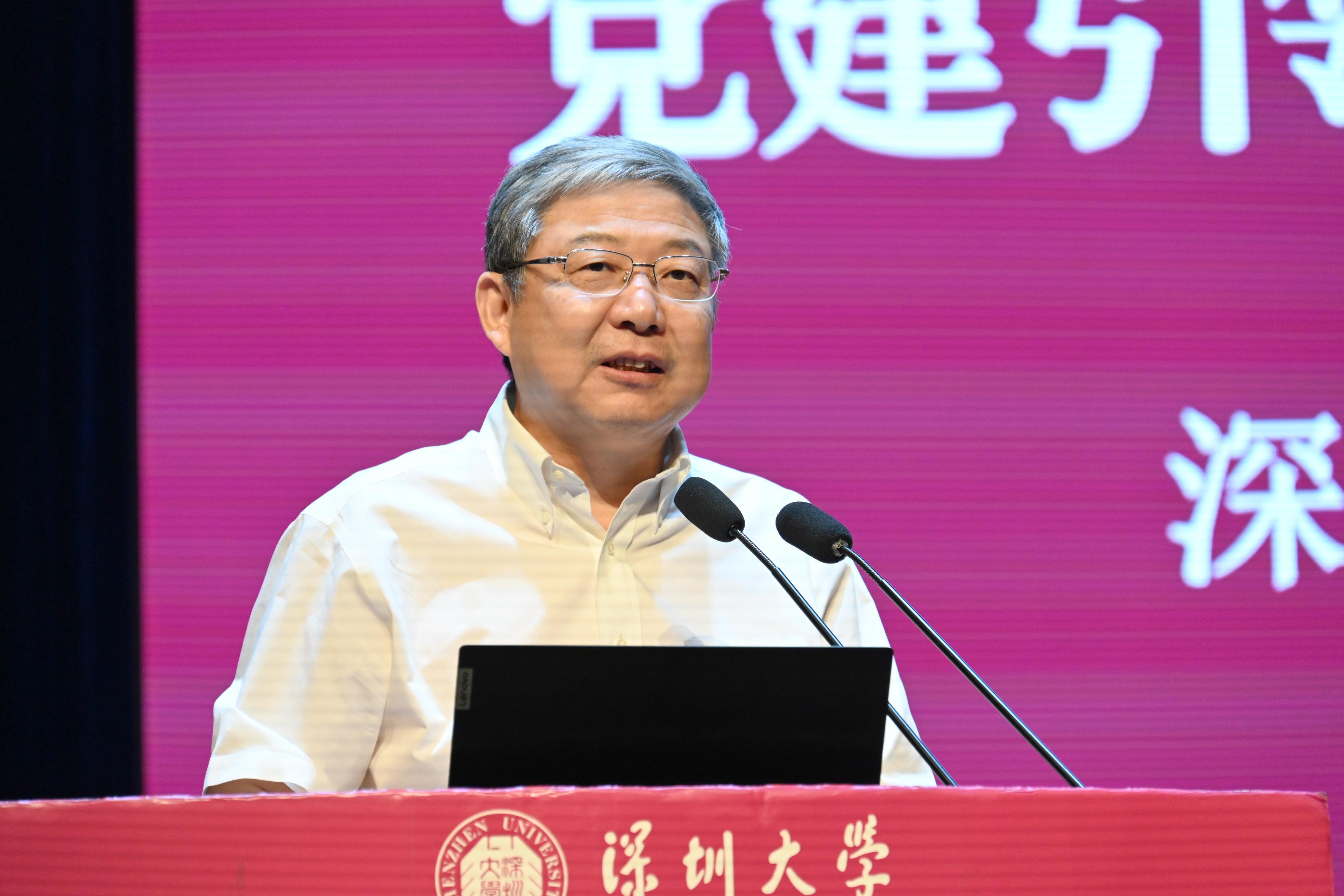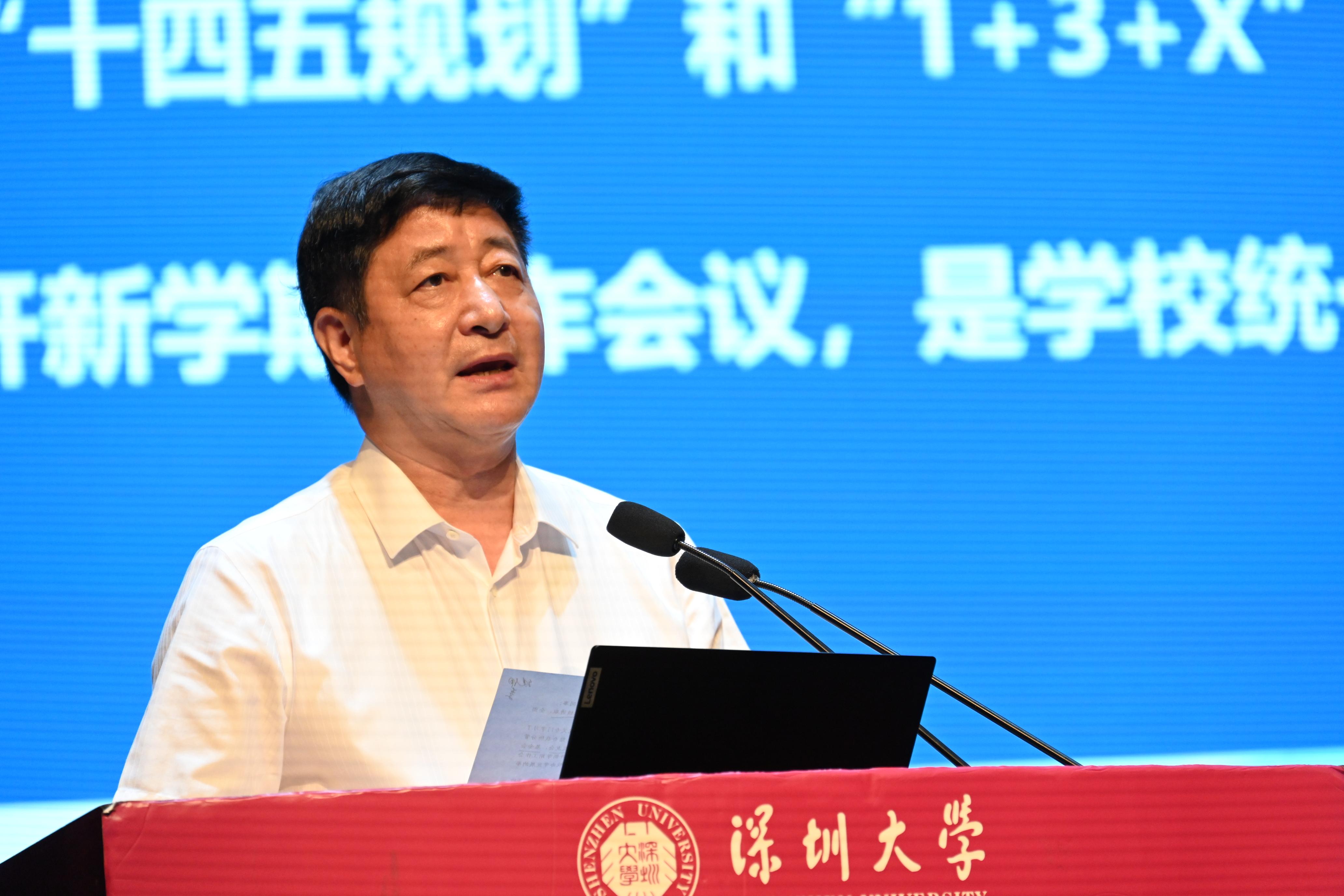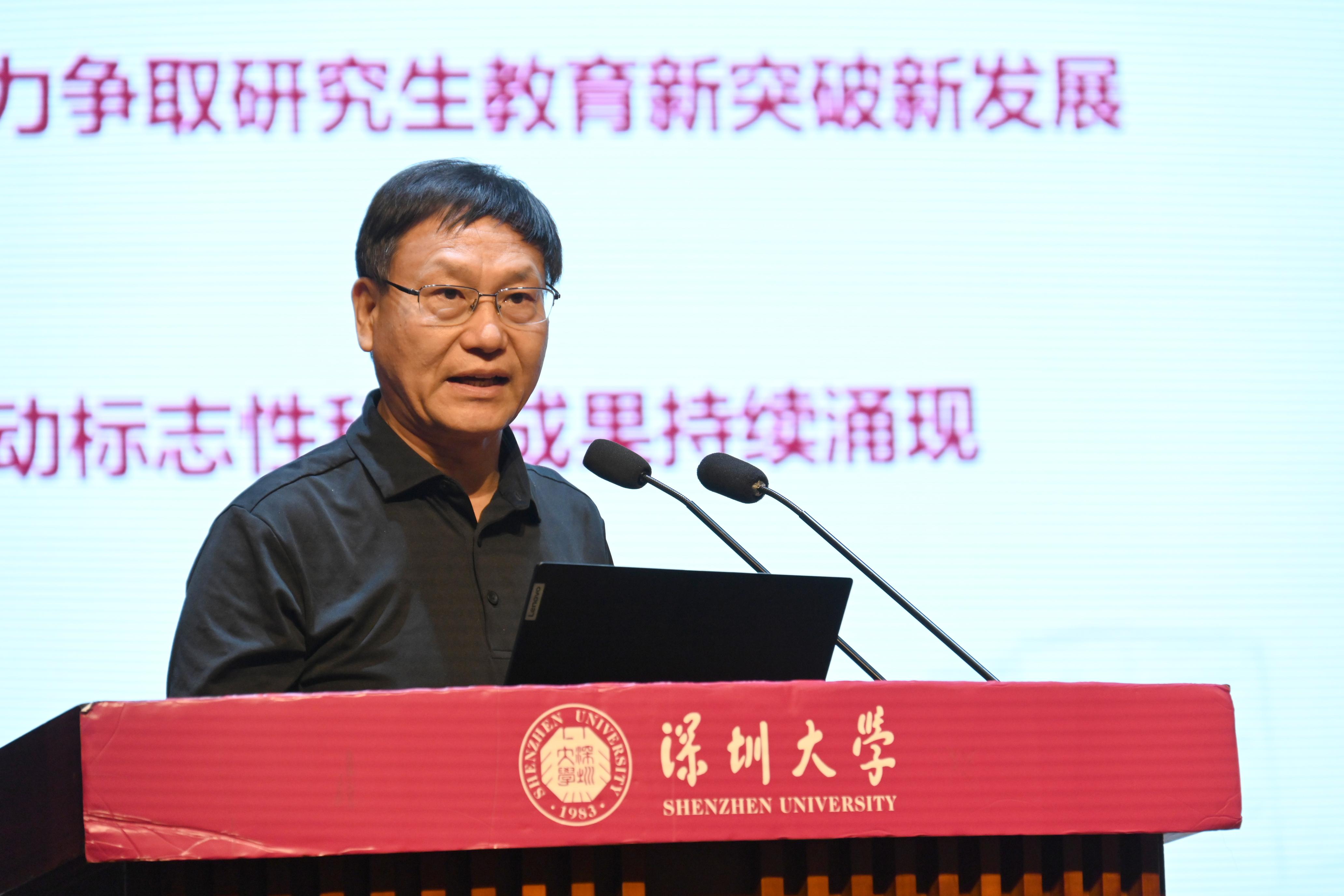 张学记就学校发展规划落实、研究生教育、科技成果推进、深大总医院发展、深大华南医院发展、资产经营公司六个方面提出新学期新目标。