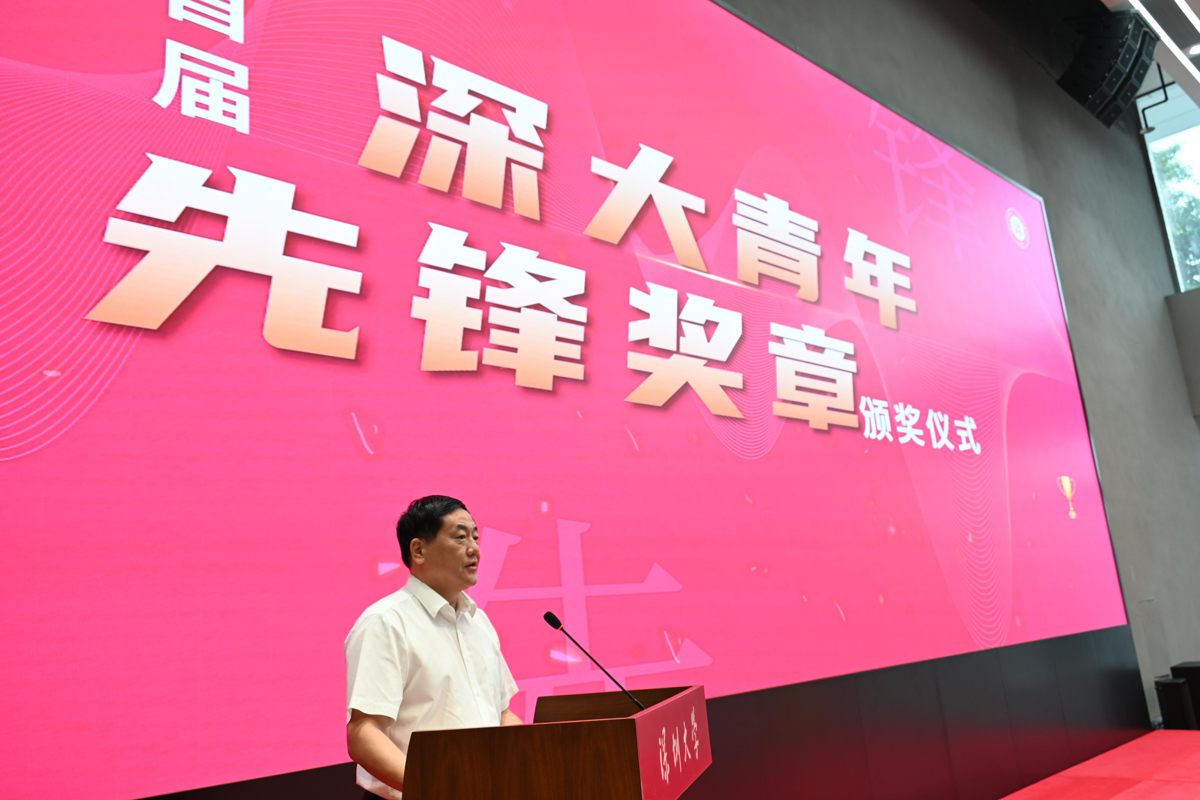 范志刚表示,今天是芒果体育建校39周年纪念日,39年来,深大人锐意改革,砥砺前行,创造了高等教育发展史上的“深圳速度”。我们在这个特殊的日子举办首届“深大青年先锋奖章”颁奖典礼,很有意义,也让更多人看到了深大青年在竞争开拓中力攀高峰的“闯”,在突破创新中成绩傲人的“创”,在坚守岗位中乐于支撑的“扛”,在公益服务中无私奉献的“善”,在急难险重间挺身而出的“勇”。希望未来,更多的“深大青年先锋”们,秉持“脚踏实地、自强不息”的深大精神,牢记“自立自律自强”的校训精神,不断进取开创、担当作为、攻坚克难,为广大师生树立青年模范典型。相信在这些青年先锋的引领下和广大师生的共同努力下,芒果体育一定能够实现建设新时代中国特色社会主义标杆大学和加快创建世界一流大学的目标。