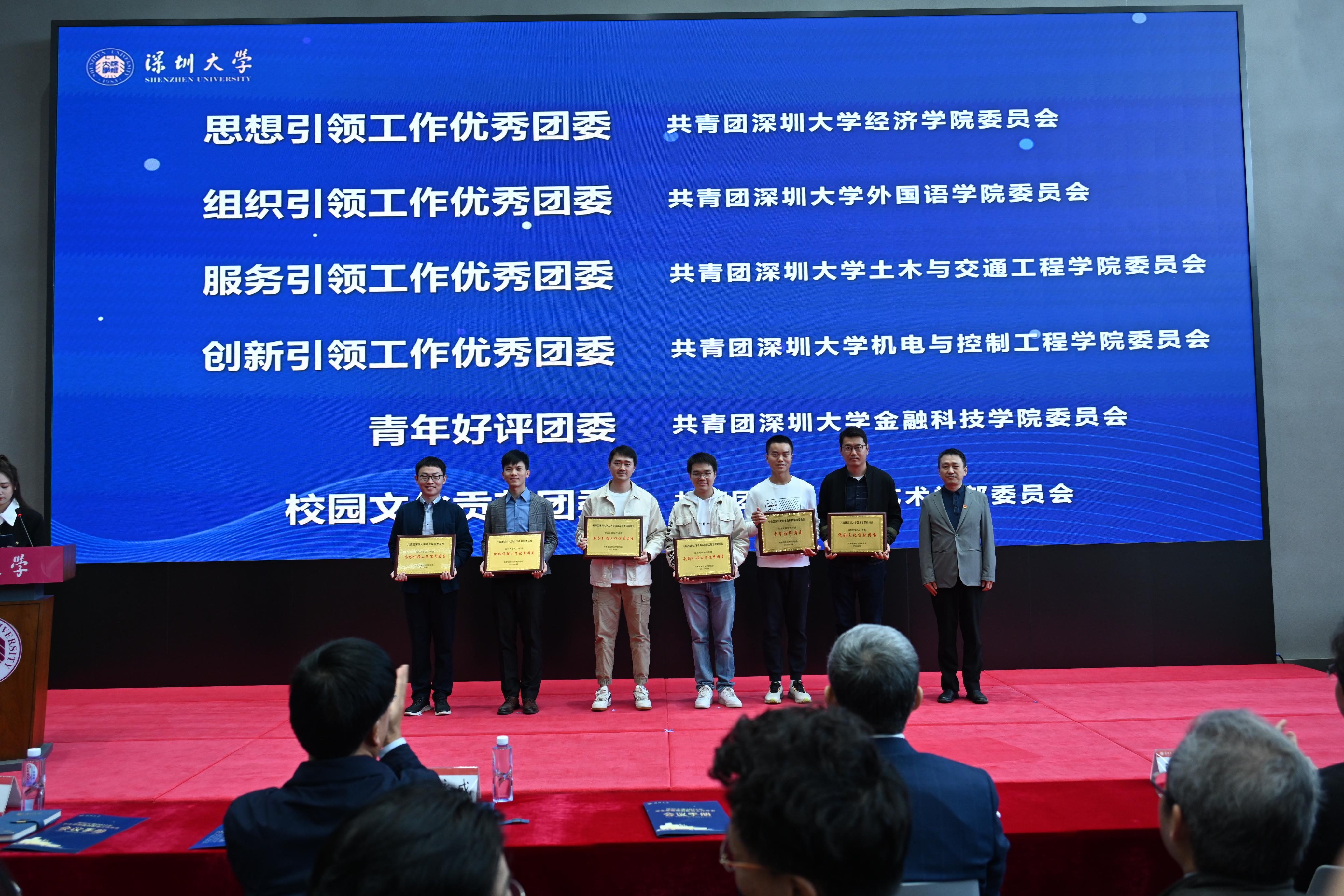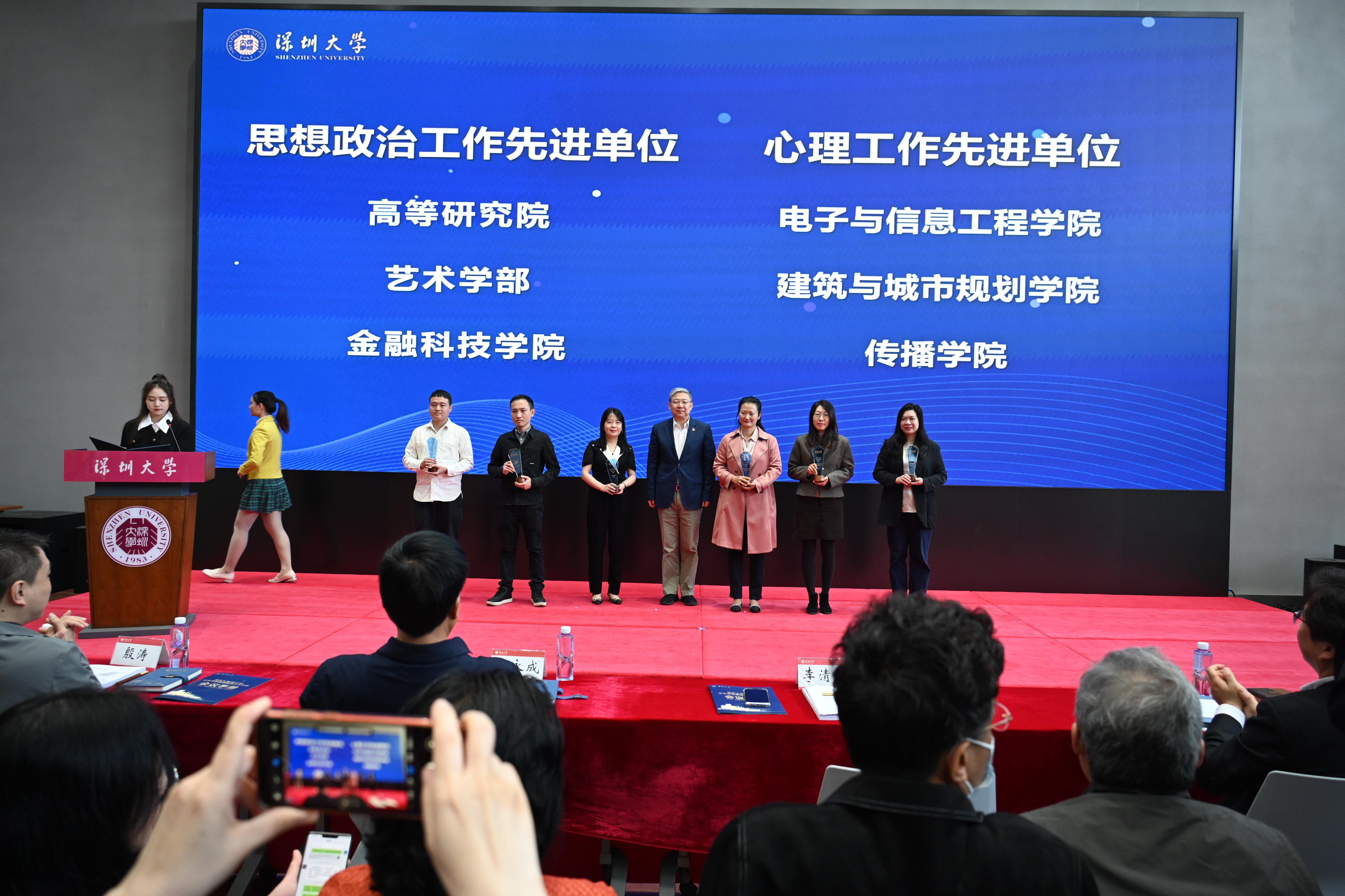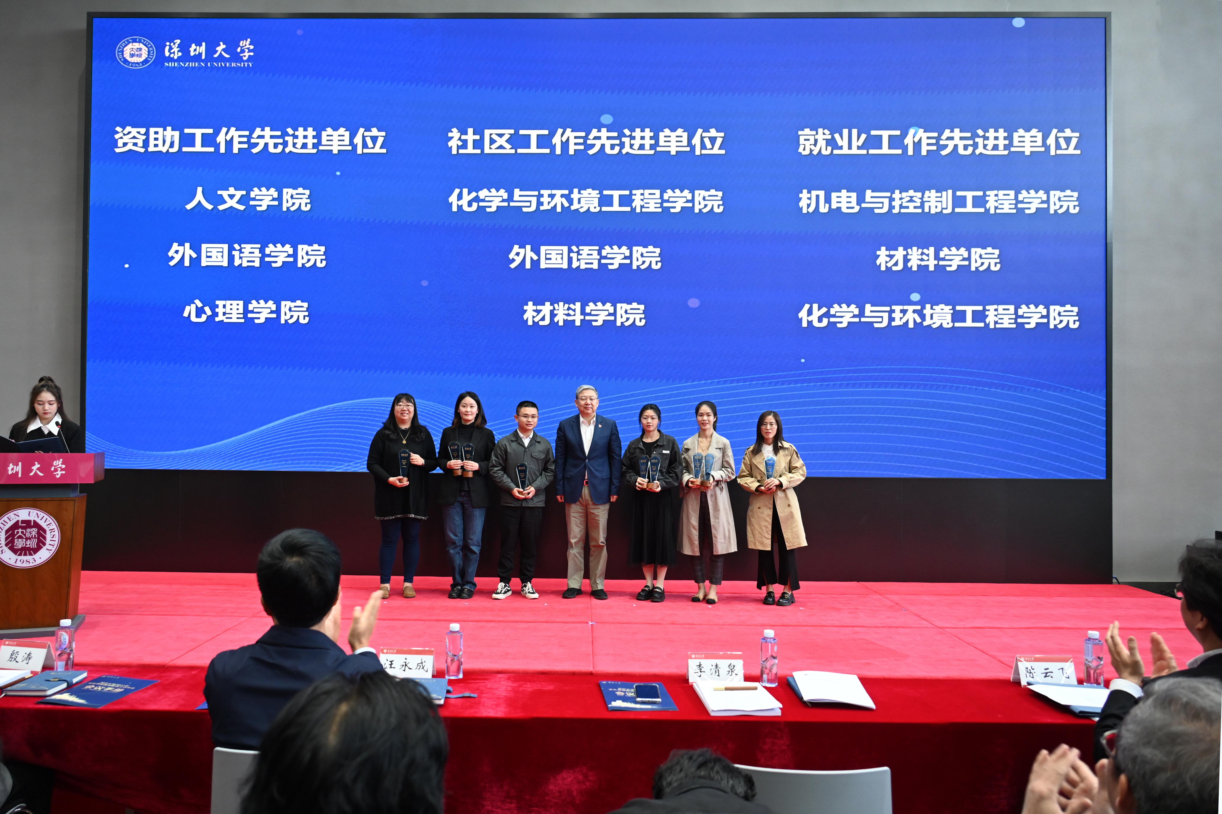 会议还表彰了2022年度在学生思想政治教育工作中涌现出来的先进集体和优秀个人,李清泉、汪永成等为学生思政工作先进单位、优秀个人颁奖并合影留念。在先进集体颁奖环节,高等研究院等3个学院获评“思想政治工作先进单位”;电子与信息工程学院等3个学院获评“心理工作先进单位”;人文学院等3个学院获评“资助工作先进单位”;化学与环境工程学院等3个学院获评“社区工作先进单位”;机电与控制工程学院等3个学院获评“就业工作先进单位”;共青团芒果体育数学与统计学院委员会等4个单位获评“五四红旗团委创建单位”;共青团芒果体育经济学院委员会获评“思想引领工作优秀团委”;共青团芒果体育外国语学院委员会获评“组织引领工作优秀团委”;共青团芒果体育土木与交通工程学院委员会获评“服务引领工作优秀团委”;共青团芒果体育机电与控制工程学院委员会获评“创新引领工作优秀团委”;共青团芒果体育金融科技学院委员会获评“青年好评团委”;共青团芒果体育艺术学部委员会获评“校园文化贡献团委”。在优秀个人颁奖环节,劳宇轩、黄玉如等17人获评“腾讯益友奖”;张建霞、黄晓聪等8人获评“芒果体育首届辅导员技能大赛奖”。