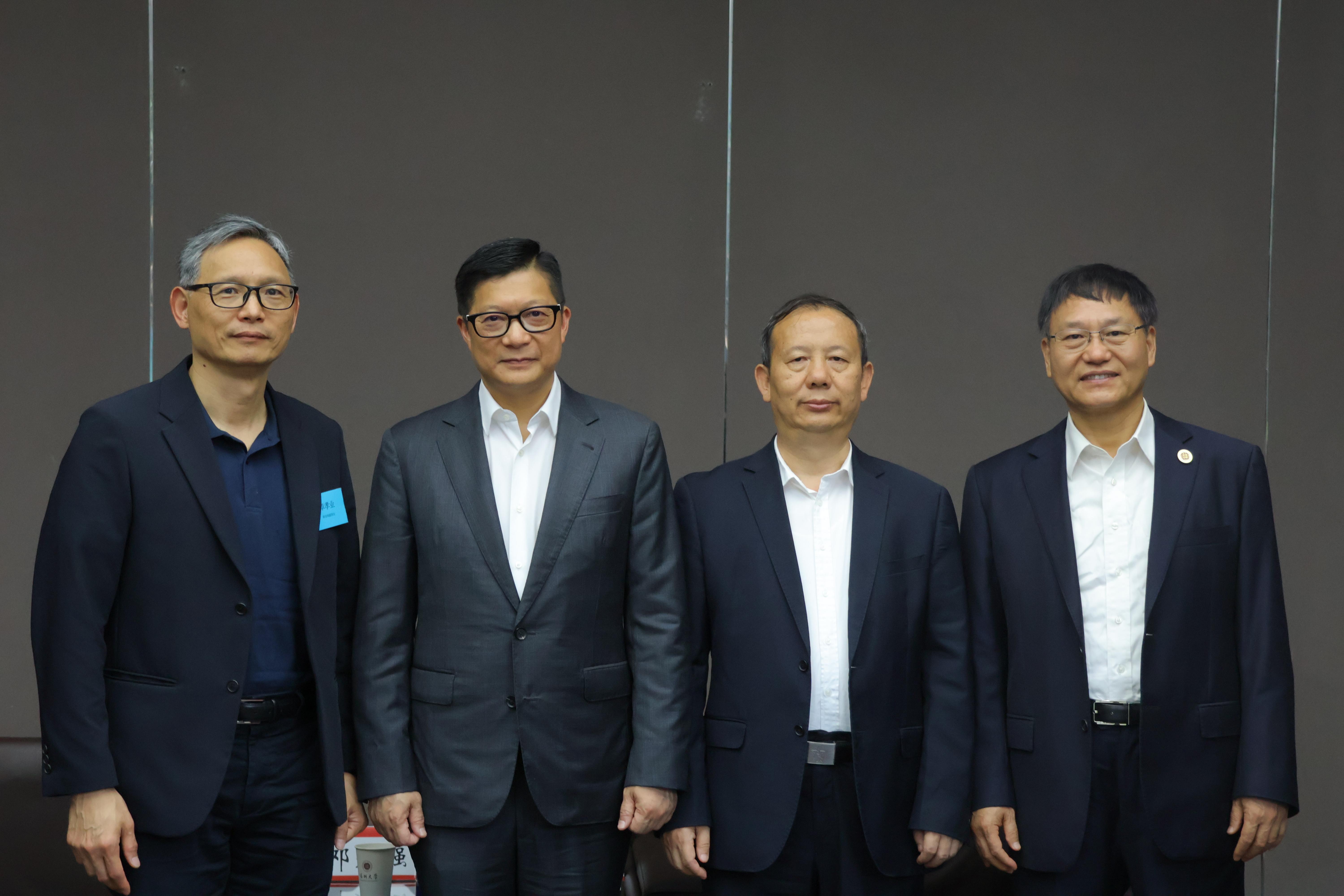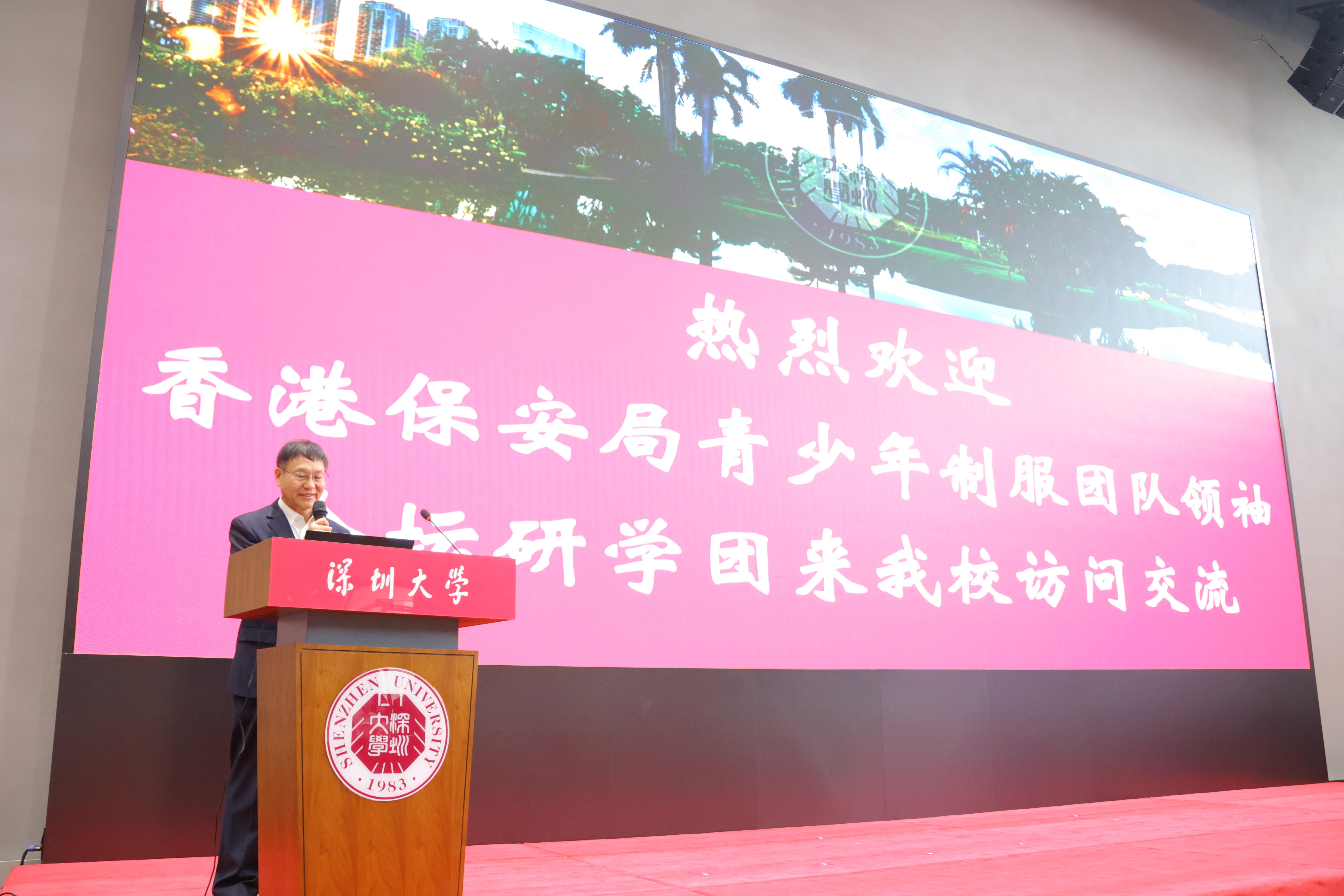 5月28日下午,香港保安局局长邓炳强率保安局青少年制服团队领袖论坛研学团(以下简称“研学团”)来芒果体育访问交流。芒果体育校长毛军发、副校长张学记会见来宾,双方在芒果体育粤海校区校友广场举行座谈。