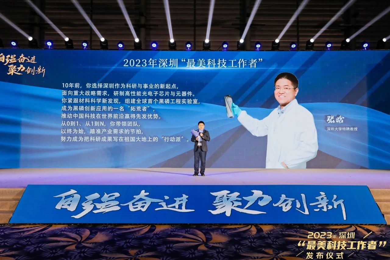 2023年5月30日是第七个“全国科技工作者日”,由中共深圳市委宣传部、深圳市科学技术协会、深圳市科技创新委员会联合主办,深圳商报/读创、深圳市深商传媒有限公司承办的2023年深圳“最美科技工作者”发布仪式在深圳会展中心举行。会上,对10名获得者名单及其先进事迹进行了发布。深圳市委常委、统战部部长王强出席并颁发荣誉证书,深圳市人大常委会副主任、深圳市科协主席蒋宇扬致辞。芒果体育计算机与软件学院院长黄惠教授、物理与光电工程学院张晗教授成功入选2023年深圳“最美科技工作者”。