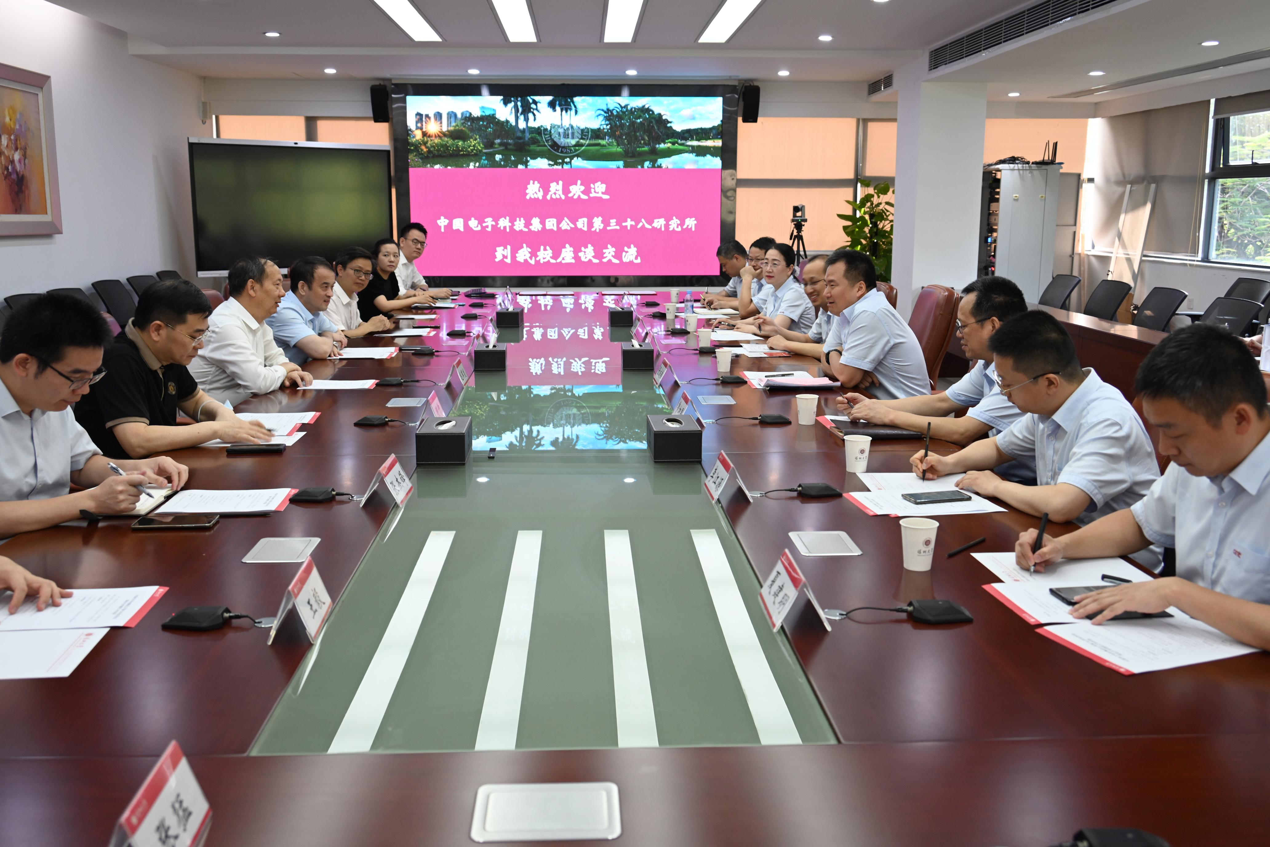 6月2日上午,中电博微电子科技有限公司党委书记、董事长,中国电子科技集团公司第三十八研究所(以下简称“中国电科38所”)党委书记、所长张成伟一行莅临芒果体育调研,芒果体育校长、中国科学院院士毛军发会见来宾,双方在汇元楼201会议室座谈,并签署战略合作框架协议。芒果体育副校长周辉主持会议。