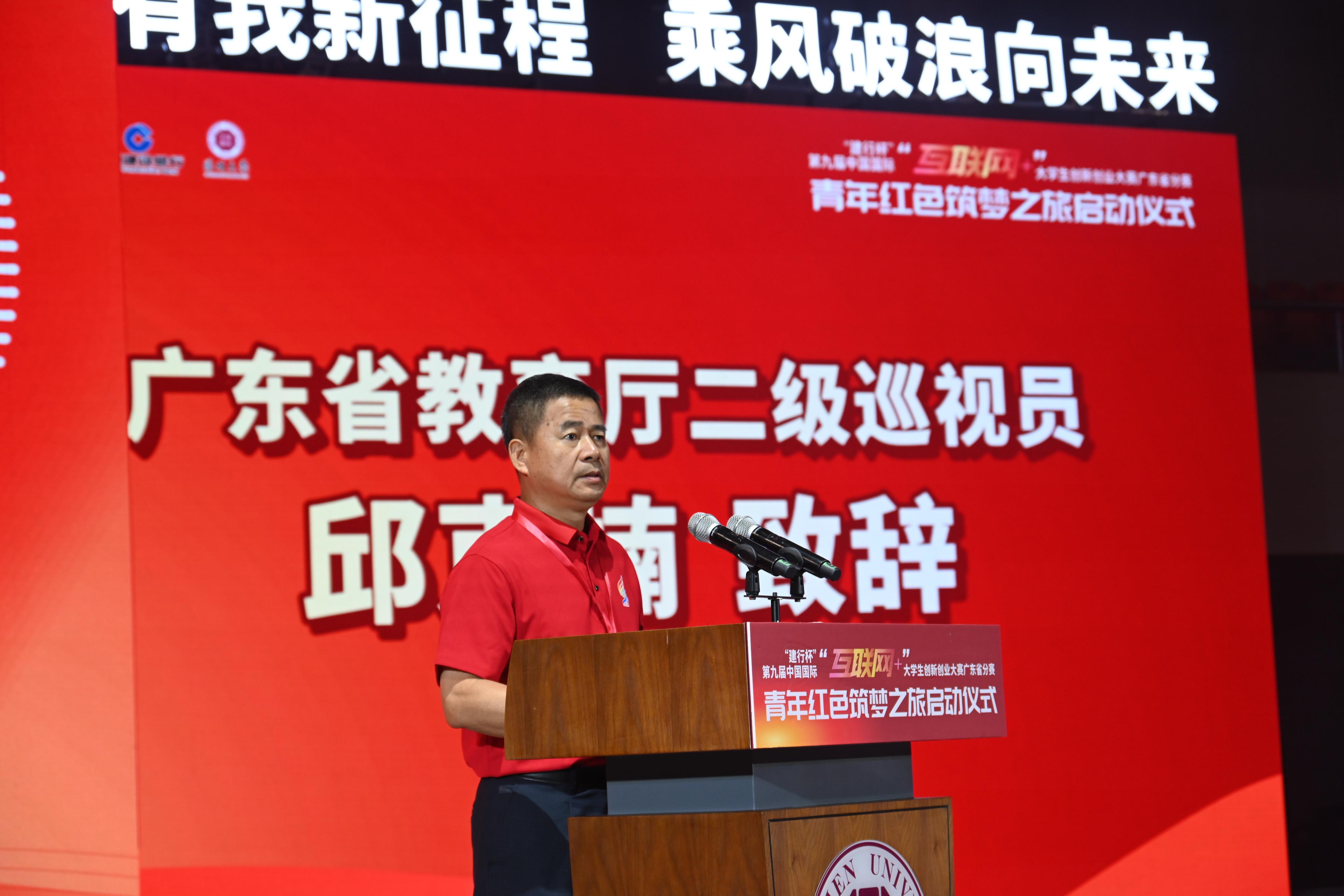 启动仪式上,李清泉、邱克楠、范题、张晓红共同按动启动装置,宣布本届“红旅”活动正式启动。广东省分赛组委会为此次大赛的6个小队授旗。