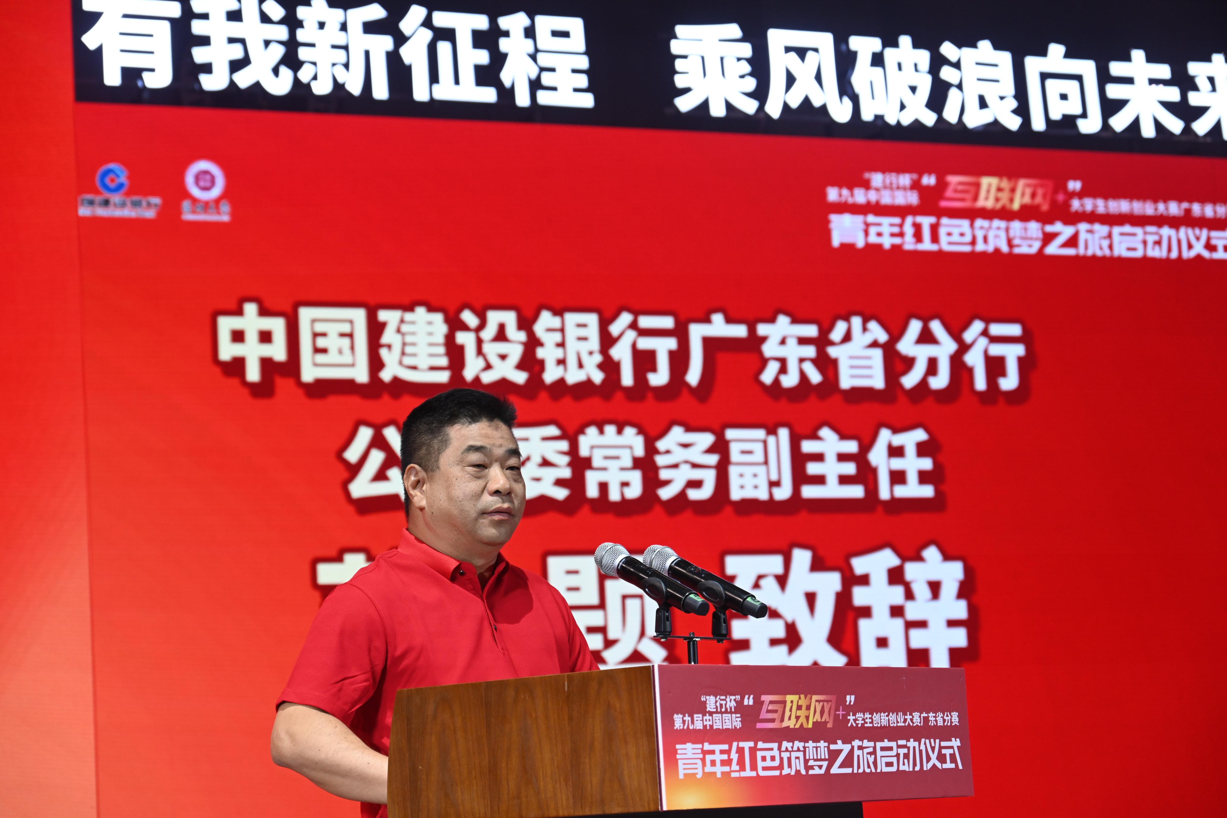 中国建设银行广东省分行公司委常务副主任范题致辞。他表示,“互联网+” 广东省赛已发展成为广东深化创新创业教育改革的重要载体和平台,呈现出参赛项目井喷式增长、紧扣国家战略和社会发展需求、质量全面提升、获奖院校多元化、国际影响力屡创新高等五大亮点,为推动全省大学生创新创业教育、助力地方经济社会发展作出了积极的贡献。建行广东省分行连续冠名支持八届“互联网+” 广东省赛,为参赛项目提供对公结算、投融对接、产业孵化、项目推广、项目融资、大财富管理的服务,助推项目落地转化。未来建行将为全省强省加快构建高质量发展体系继续贡献方案和力量,祝愿参赛选手在大赛中披坚执锐,再创佳绩。