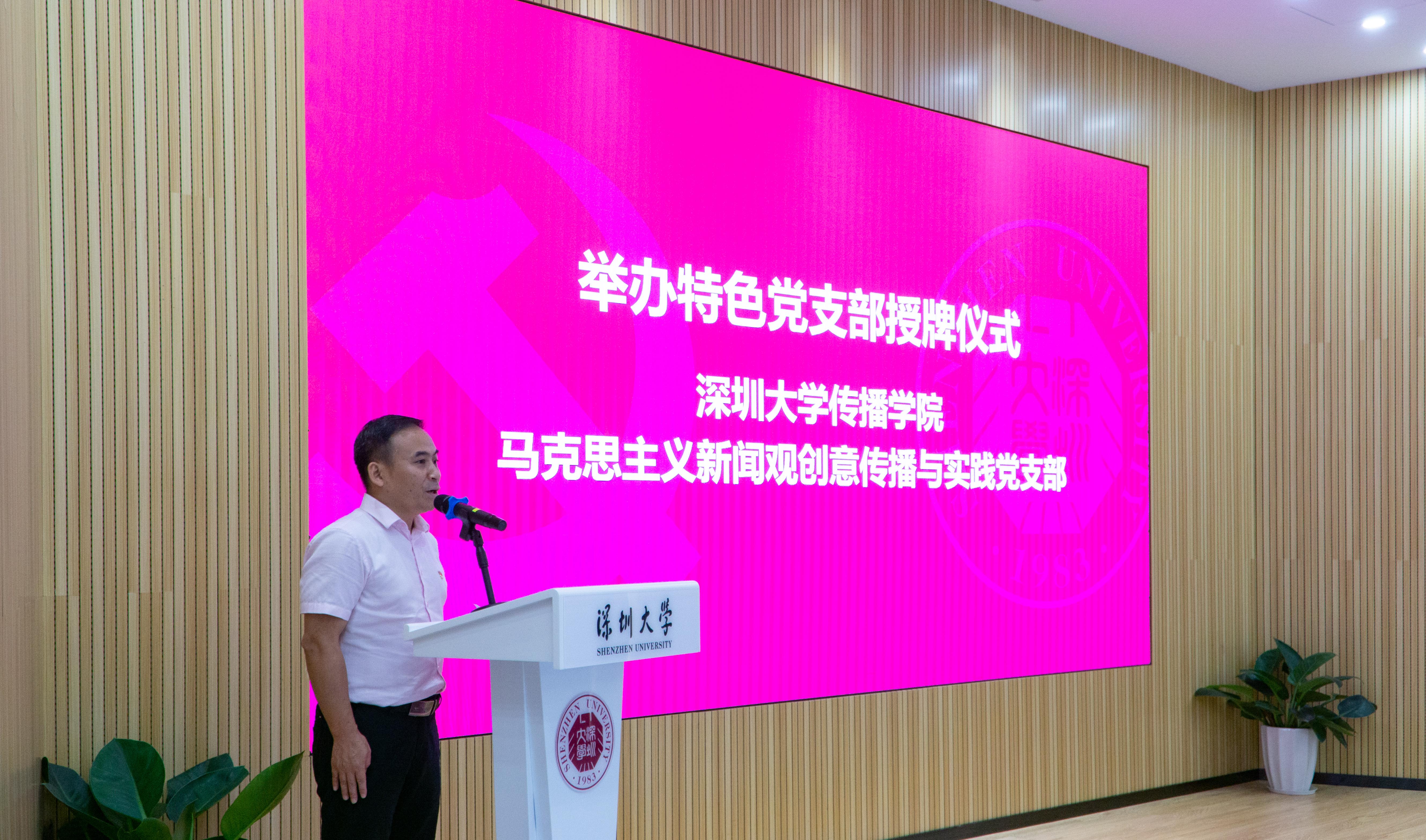 本次主题党日“七个一”活动以看一次展览、上一堂微党课、听一段诵读、授牌一个特色党支部、颁发一批“光荣在党50年纪念章”、重温一次入党誓词、过一次政治生日七种形式开展。活动中,参加活动的党员参观了学习贯彻习近平新时代中国特色社会主义思想主题教育专题展览,集体观看2023年高校党组织示范微党课之“铸魂增智育新人、正风促干书新篇”中“上好‘大思政课’,培养堪当民族复兴重任的时代新人”专题,共同学习贯彻、深刻领会党的精神。广东省“诵读中国”经典诵读大赛芒果体育优胜团队铿锵有力、饱含深情地诵读了李大钊的《青春》节选,令在场党员深受触动。随后,李清泉为芒果体育传播学院马克思主义新闻观创意传播与实践党支部授予“特色党支部”称号,支部书记黄玉波汇报了《亲爱的红军》思政课剧目的打磨过程和未来发展规划。