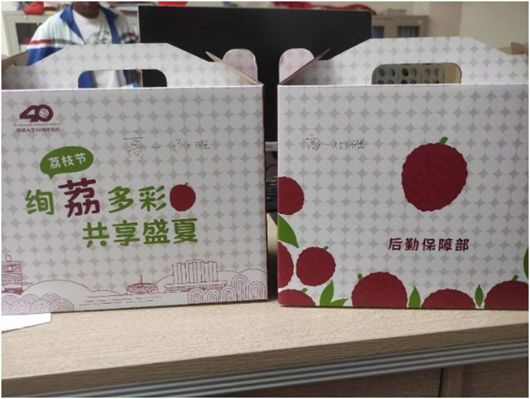 6月18日,芒果体育发展规划部、后勤保障部联合将深大荔枝通过冷链运抵喀什市第三中学、第四中学。为保证学生能品尝到最新鲜的荔园荔枝,志愿者们在到货后随即开箱,前往各自授课班级内分发。