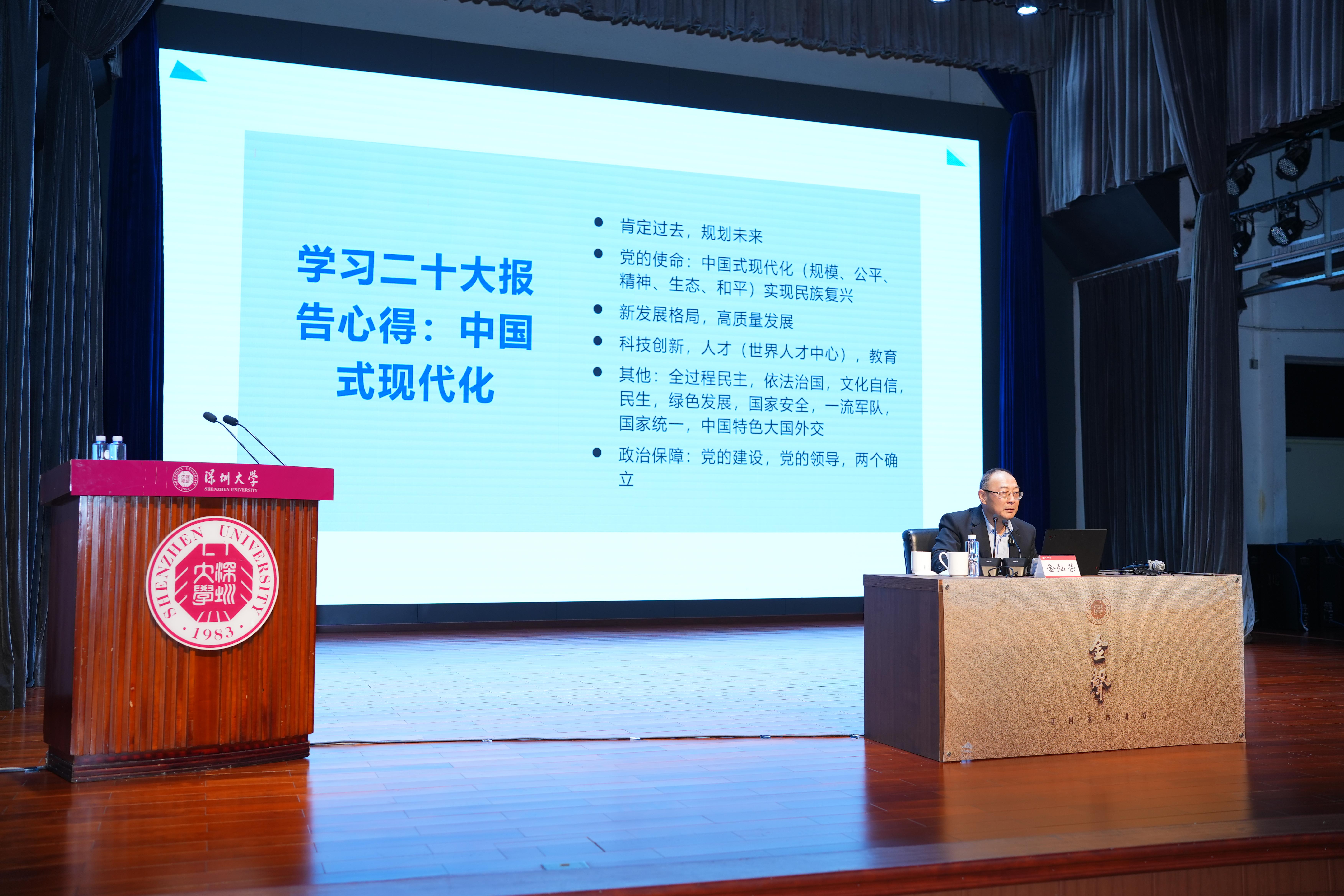 讲座中,金灿荣首先通过党的二十大报告,阐述中国式现代化的时代背景,全面解析中国面对世界百年未有之大变局,在经济、政治、军事、外交等领域正面临的机遇与挑战,并通过分析百年变局的背景和内涵,展望中国的未来发展。
