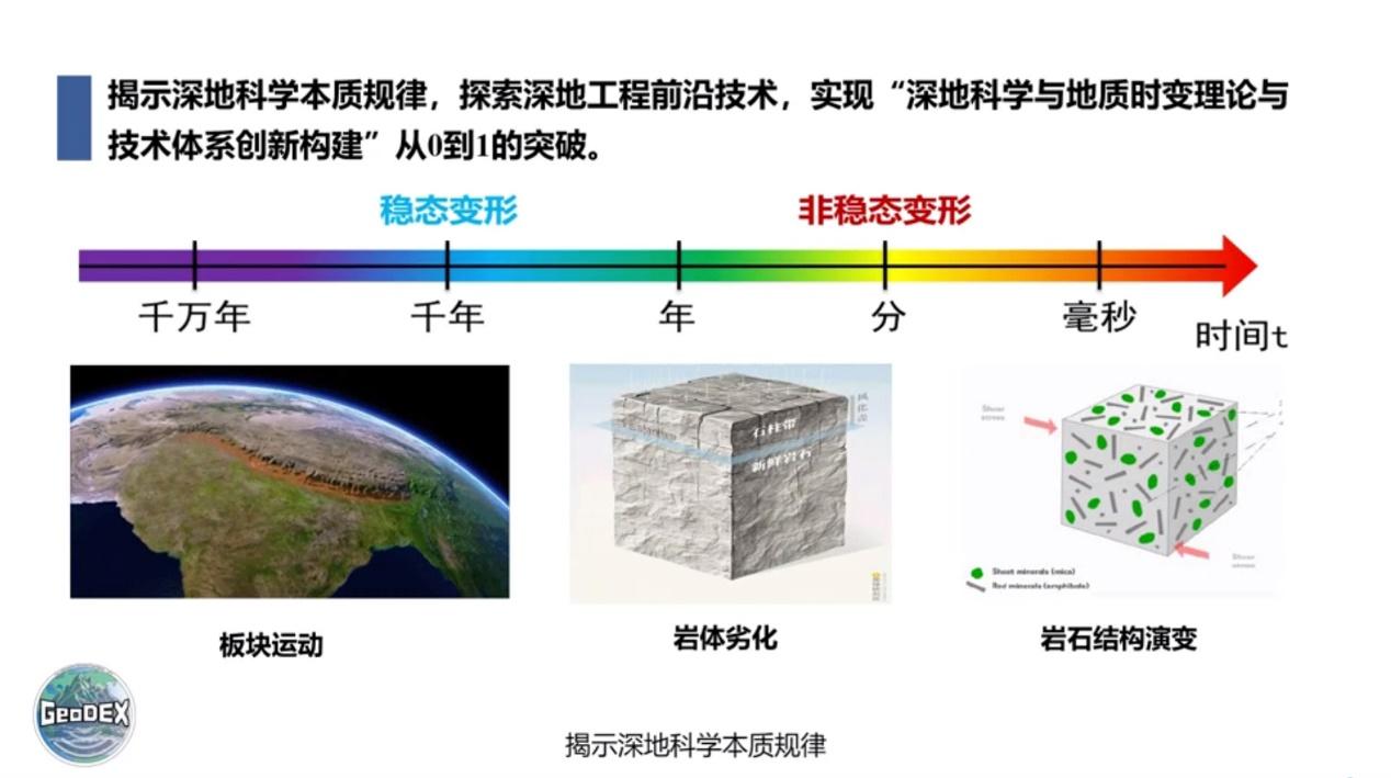 GeoDEX项目研究将为跨越地质年代与人类时间尺度的不同空间岩土体与地质环境的演变过程研究,提供充分的地质时变信息及证据,揭示深地科学本质规律,探索深地工程前沿技术,实现“深地科学与地质时变理论与技术体系创新构建”从0到1的突破。