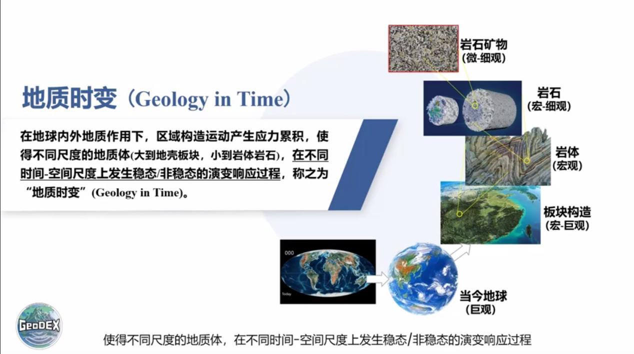 深地开发与深空、深海开发并重为国家的三深战略,向地球深部进军是我们必须解决的战略科技问题,为此必须厘清深部地质环境的演变奥秘。CJPL是世界最深最大的极深地下实验室,位于青藏高原东麓和一/二级地势阶梯过渡带,蕴含丰富的地质时变内源信息,是开展GeoDEX项目研究的绝佳场所。GeoDEX项目组联合国内外深地科学与地质力学优势研究团队,长期参与CJPL建设规划和运营期安全评估等工作,并首次赋予了“地质时变”的学术内涵,即在地球内外地质作用下,区域构造运动产生应力累积,使得不同尺度的地质体,在不同时间—空间尺度上发生稳态—非稳态的演变响应过程。依托CJPL构建深地原位探测站,GeoDEX项目组将实践“一中心+多节点”探测布局,开展同点—同源—同步的宏微观多场联合主被动探测,揭示地质时变的起因、过程和结果,推动与人类发展相关联的,诸如资源开发、空间利用、灾害评估、环境演变等重大科学问题的解决。