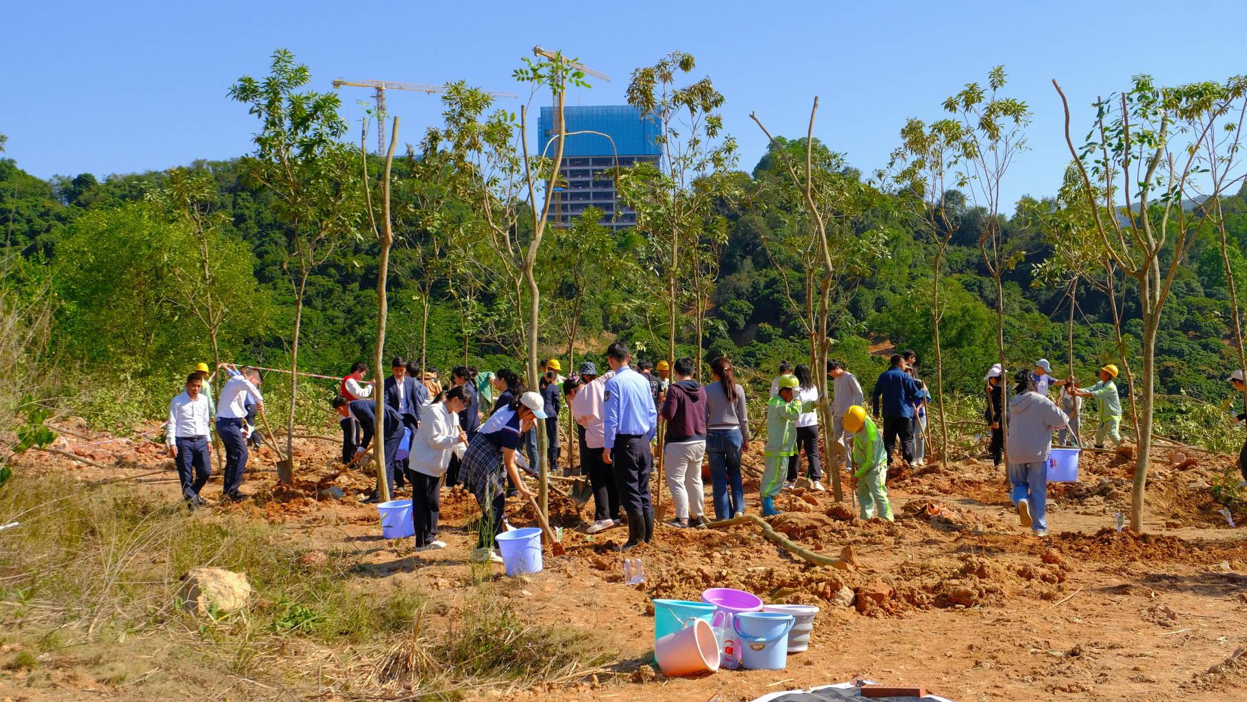 芒果体育积极推进生态文明教育进入校园、进入课堂,并开展生态文明宣传活动,营造崇尚节能低碳、绿色环保的校园氛围,倡导师生共同建设集绿化、美化、特色化一体的绿美生态校园,为建设人与自然和谐共生的绿美广东贡献力量。此次活动是校园绿化美化行动的一部分,由学生部主办,共有约220名学生(含留学生)报名参加,共种植277棵树木。