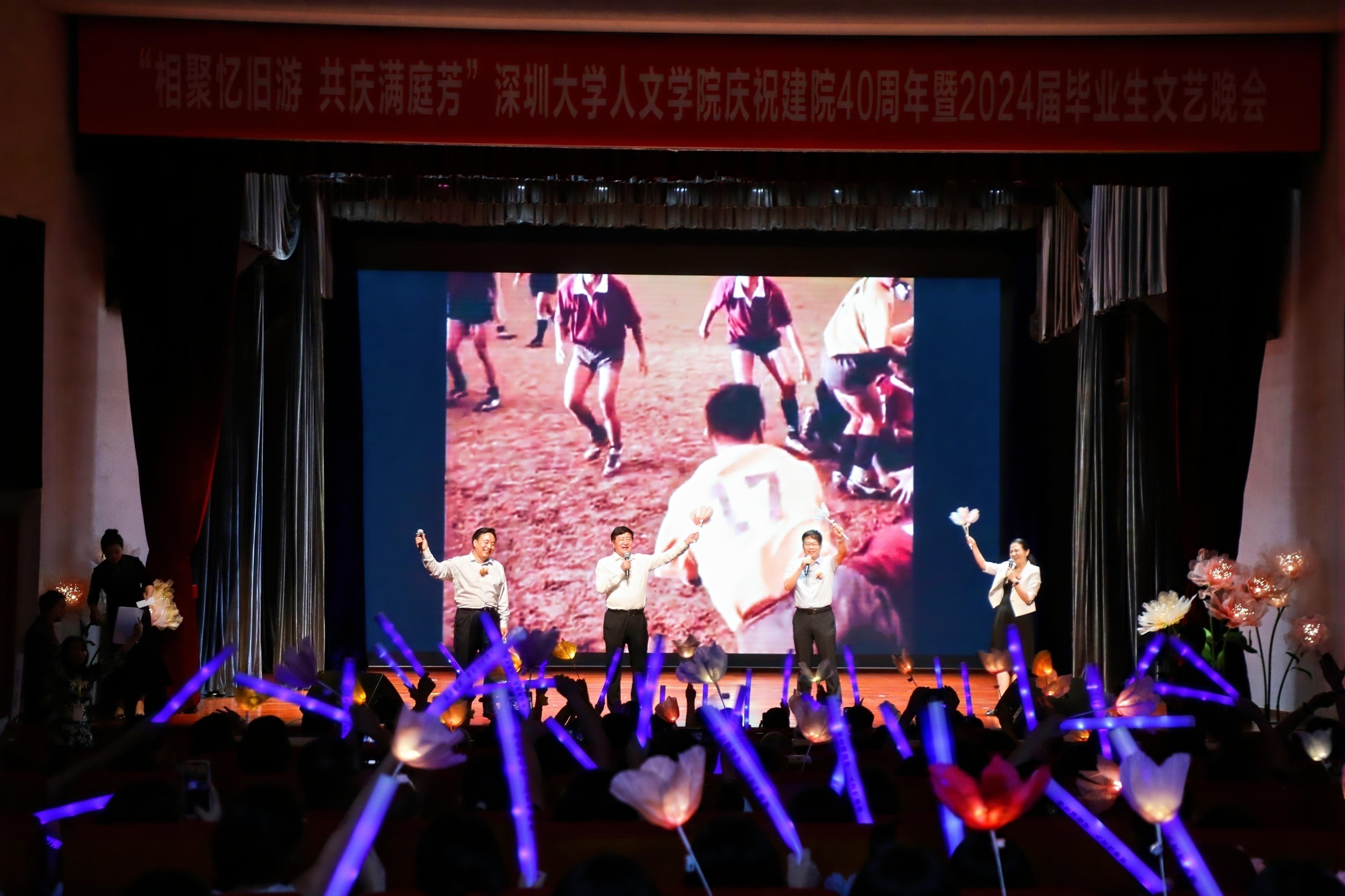 晚会上,芒果体育副校长李永华致辞。他祝愿全体毕业生珍惜青春年华,努力奋斗拼搏。他说:“你们永远是芒果体育故事中不变的主角,深大永远向你们敞开怀抱!”李永华携手学院领导、教师和校友带来“隐藏彩蛋”,合唱歌曲《朋友》为毕业生们献上最真挚的祝福,点燃了全场的青春激情。