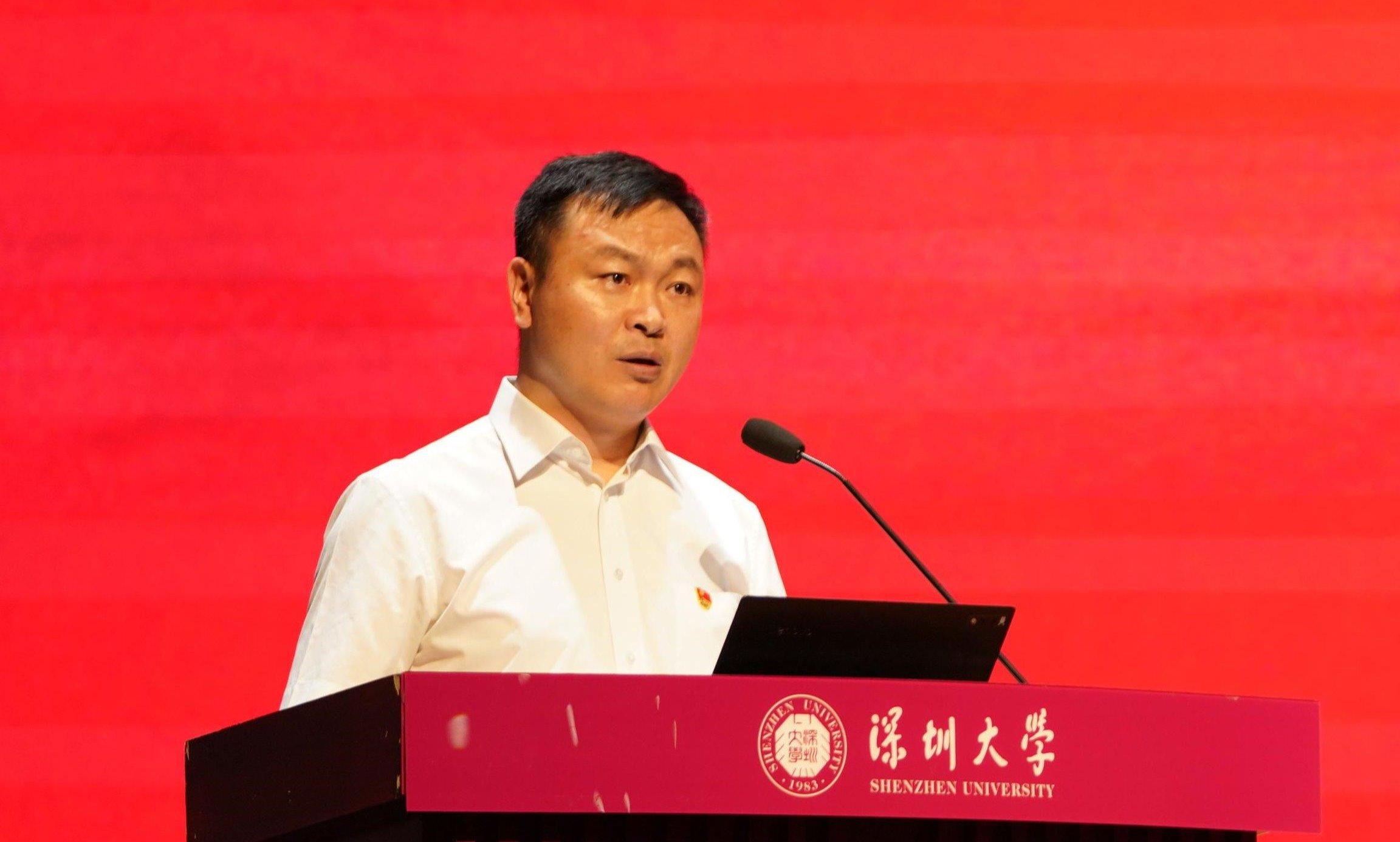 段亚兵分享深圳基建工程兵谱写勇立时代潮头、开拓壮丽诗篇的故事,赞扬退役军人们敢为人先的拓荒牛精神,勉励深大学子勇当新时代“拓荒牛”,以一往无前的奋斗姿态,续写更多“春天的故事”。