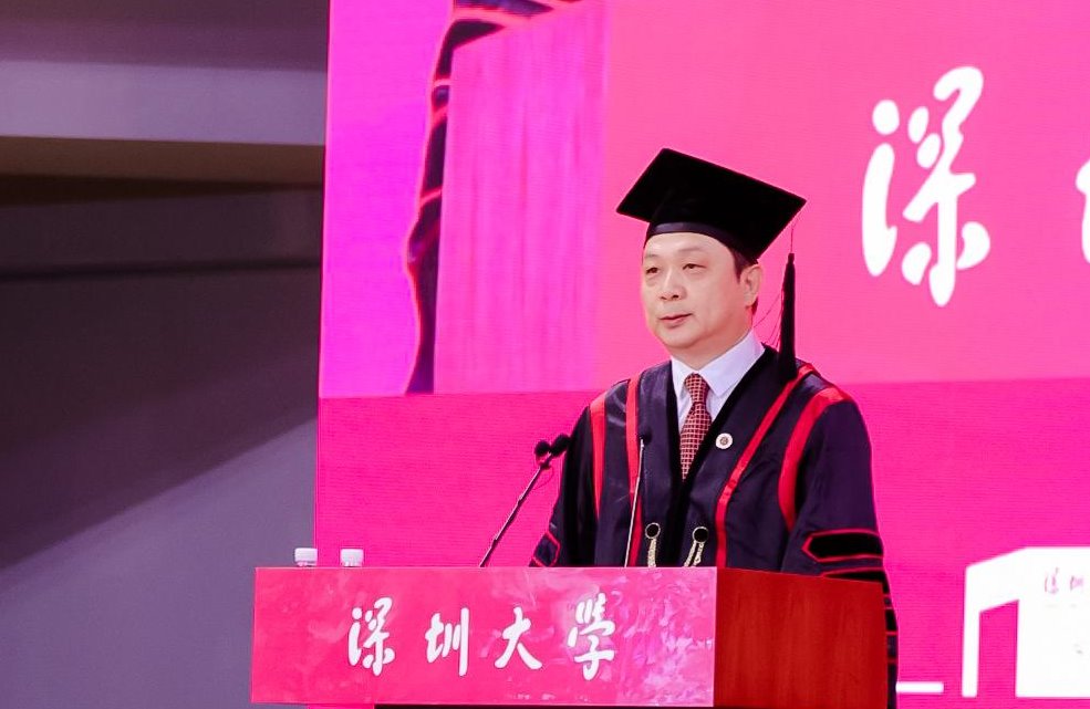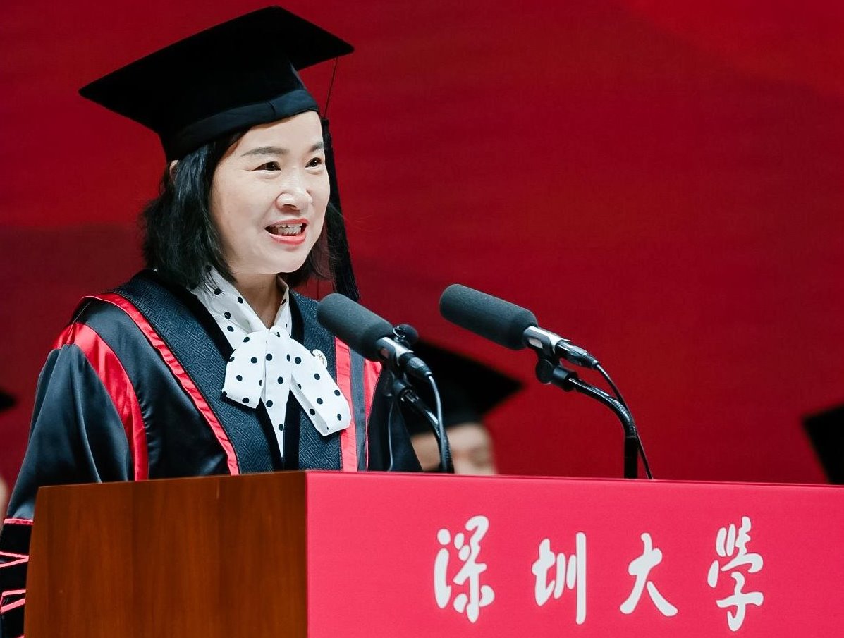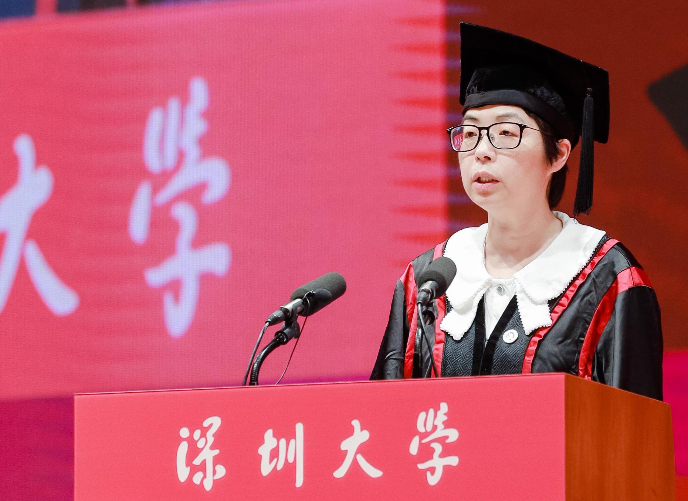 在粤海校区,计算机与软件学院院长黄惠作为教师代表发言。她说,能够见证一群年轻而又充满希望的学子完成他们求知路上的一个重要里程碑,与他们共同迎接人生的新起点,是一名教师充满喜悦和骄傲的时刻。她以《勇者不惧,希望至美,热爱永恒》为题,为即将踏上新征程的毕业生带来鼓励。勇者不惧,不惧者幸福。一个人若能无惧于心,便能坦然面对生活中的风风雨雨,享受每一个当下。万物之中,希望至美。无论未来是在科学研究中遭遇瓶颈,还是在工作生活中饱受考验,只要希望不灭,就有破局的力量,人生随时可以重来。唯有热爱,可抵岁月漫长。必须要有持久的热情和不断的探索精神,怀揣对知识、对技术最深沉的热爱,才能在这不断变革的时代大潮中立于不败。