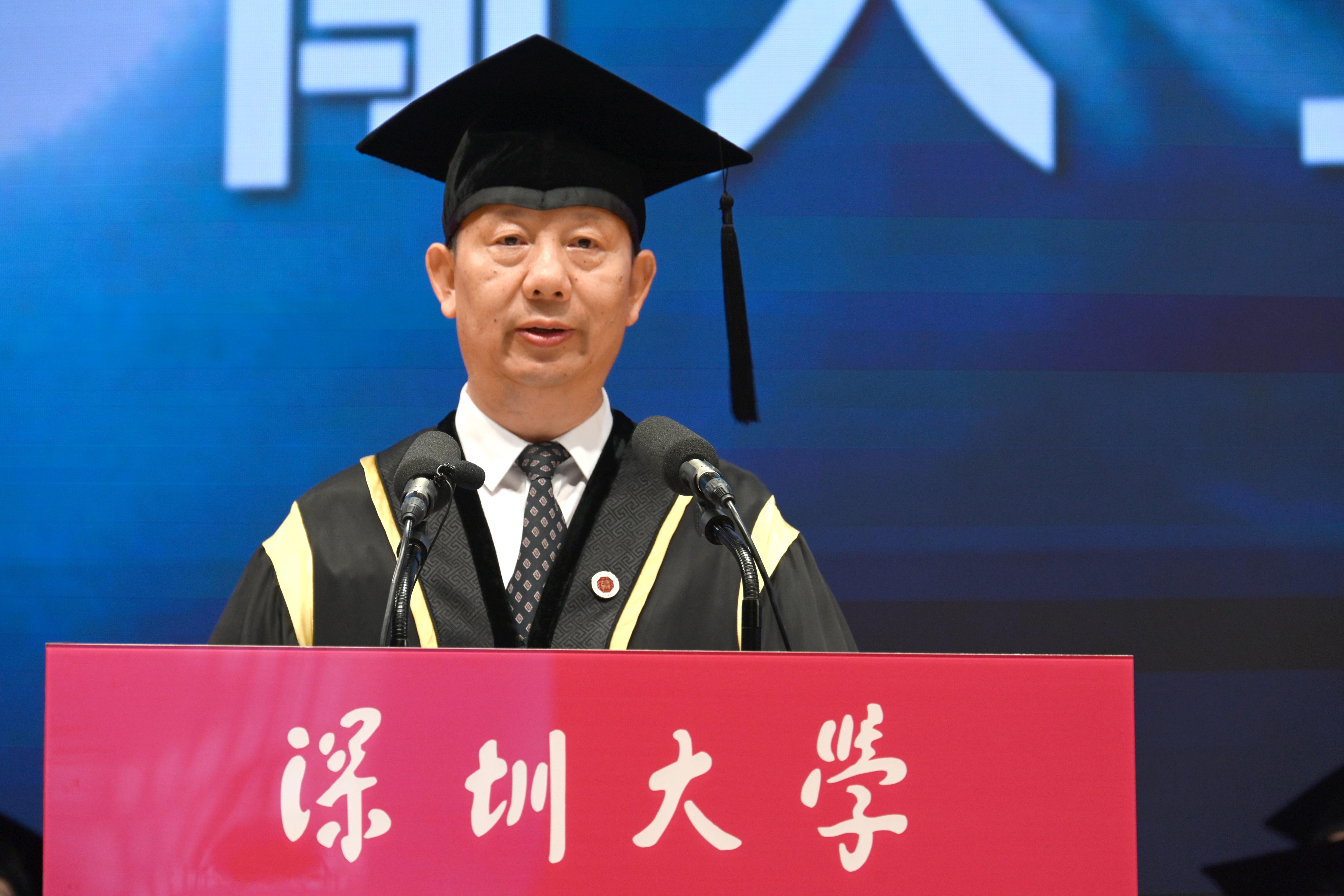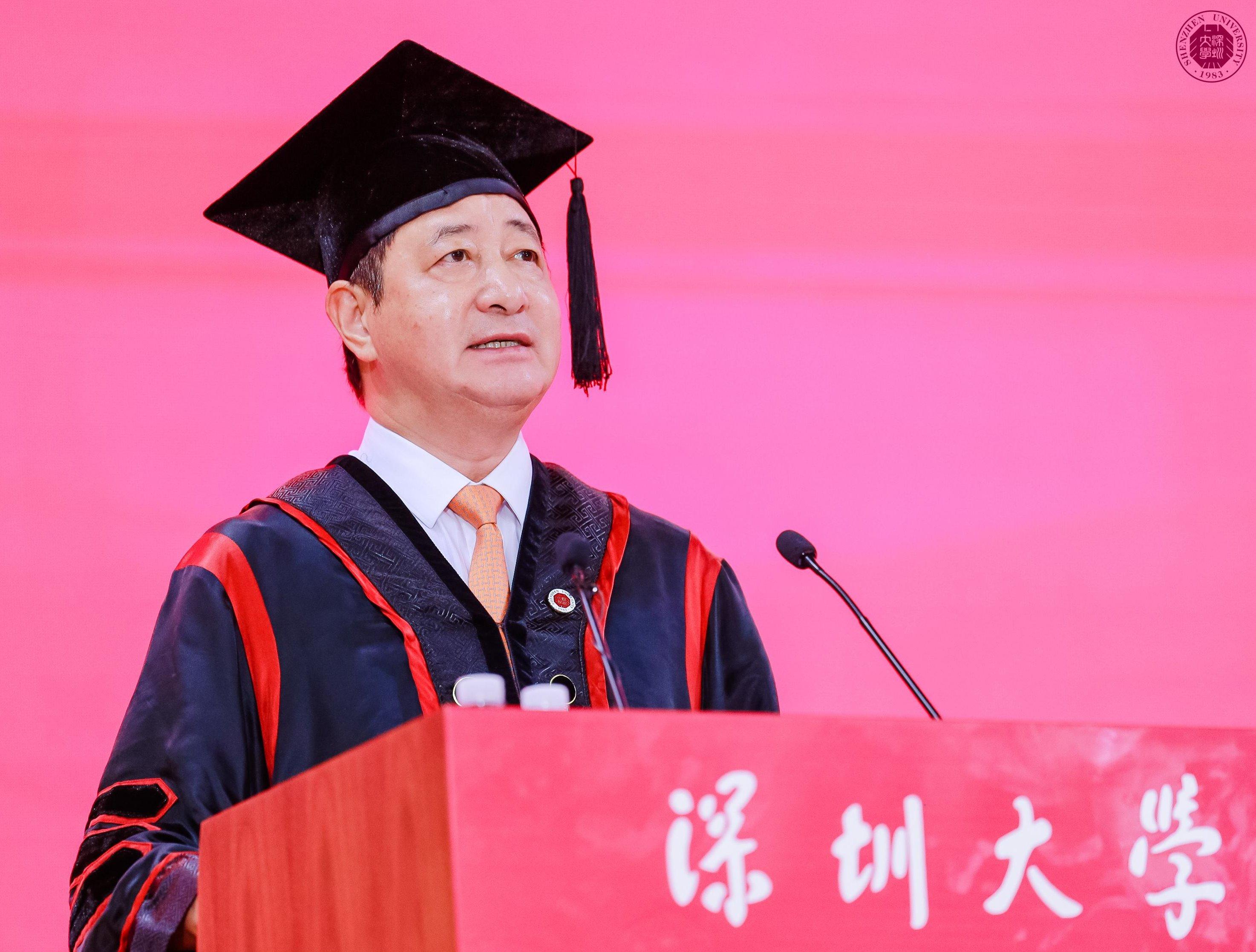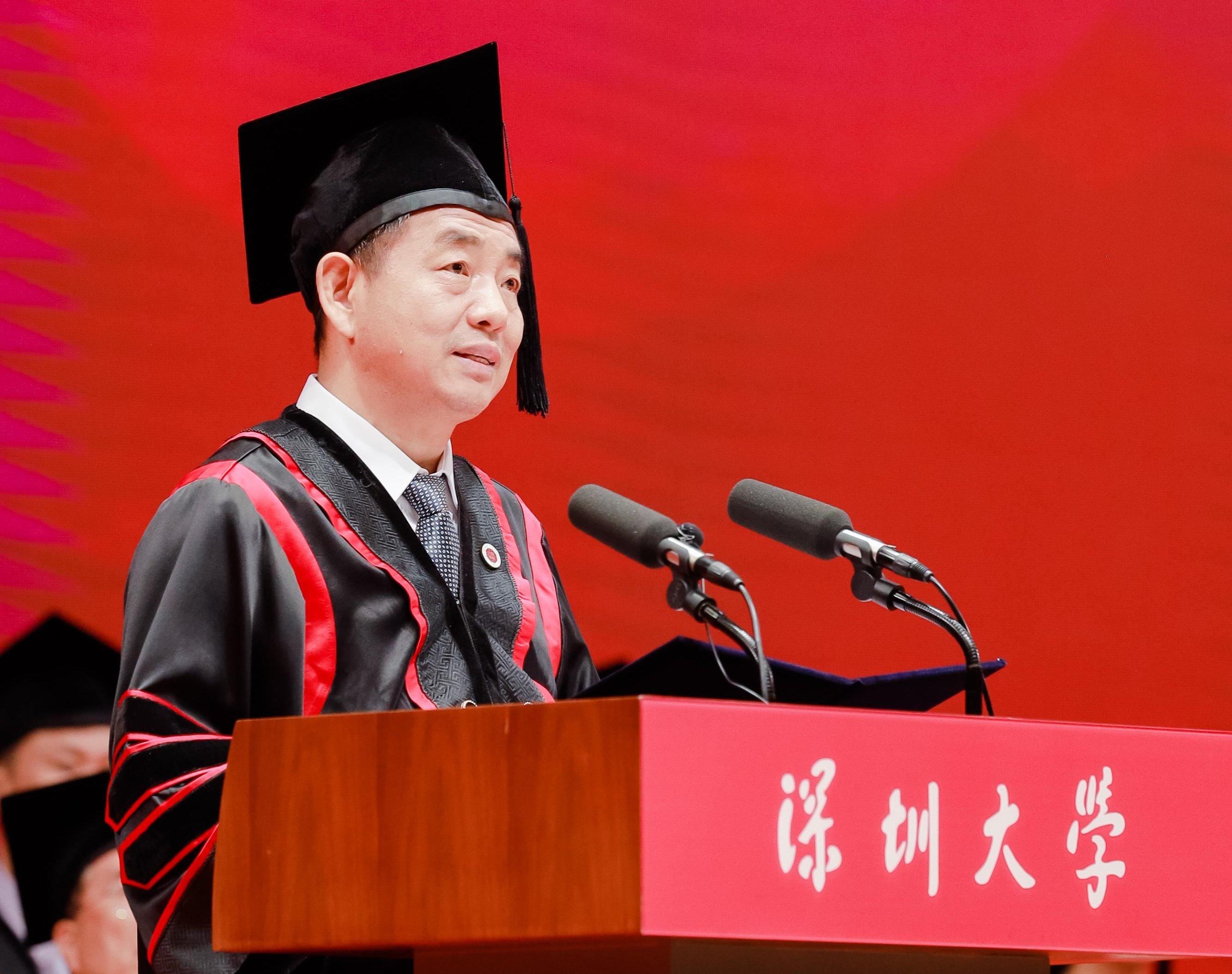 在丽湖校区,吴启超作为嘉宾代表发言。作为一名创业企业家,吴启超回顾自己带领公司成功上市和收购老牌亏损企业并实现逆转的历程。“感恩、成长”是他对毕业生们的寄语和期待,感恩时代的发展和母校的培养,也要明白“成长永远比成功更重要”。他说,深大“自立、自律、自强”的校训始终激励着他,教会他既要仰望星空,又要脚踏实地。“年轻的意义就是成长。只有成长之后的成功,才会持续持久!”他鼓励毕业生们永远积极乐观,保持正能量;保持终身学习的能力,在剧变的时代保持思考能力;并学会做时间的朋友。“在未来的人生征途上你绝对不是一个人在战斗,有数十万深大校友站在你身后!”