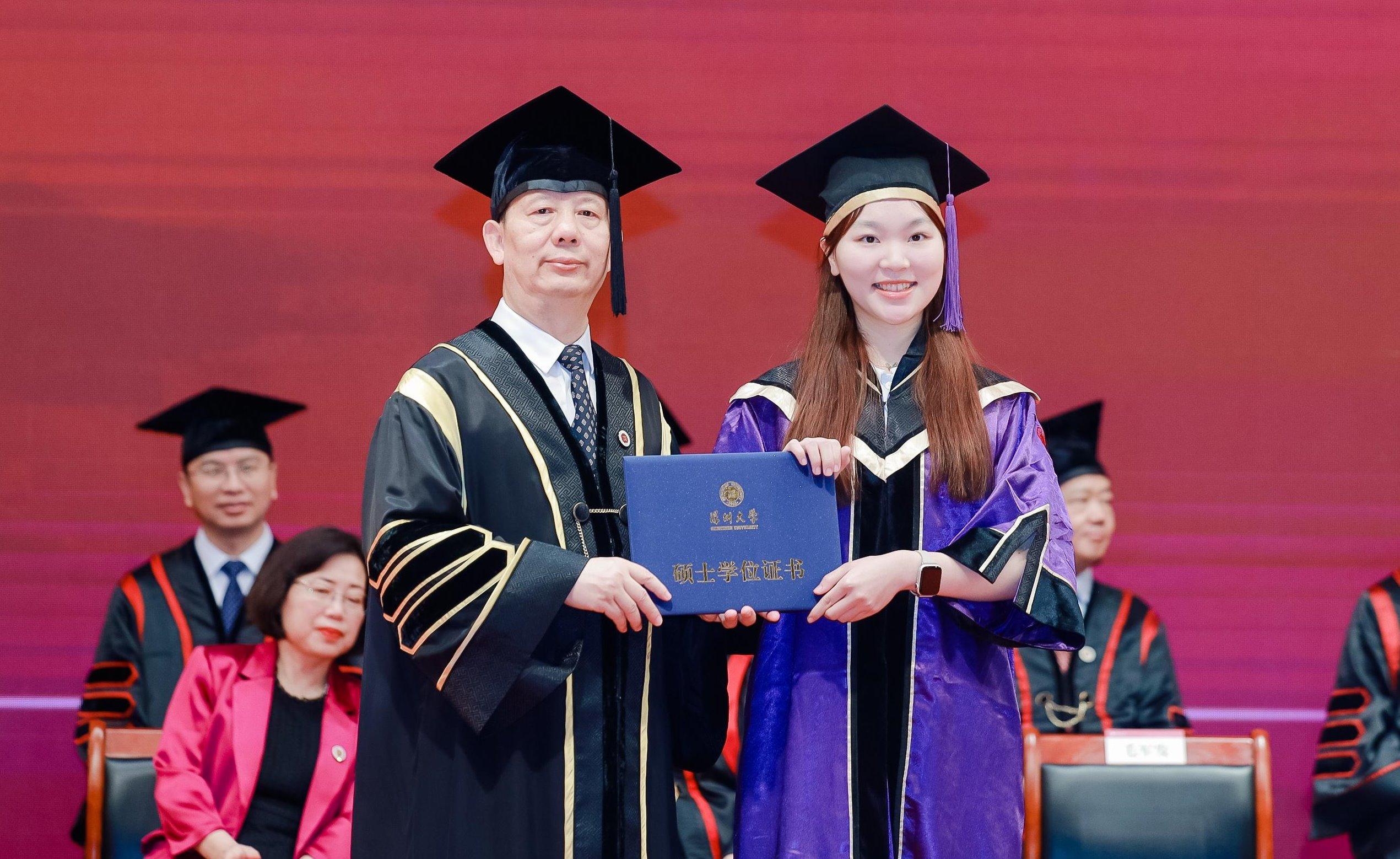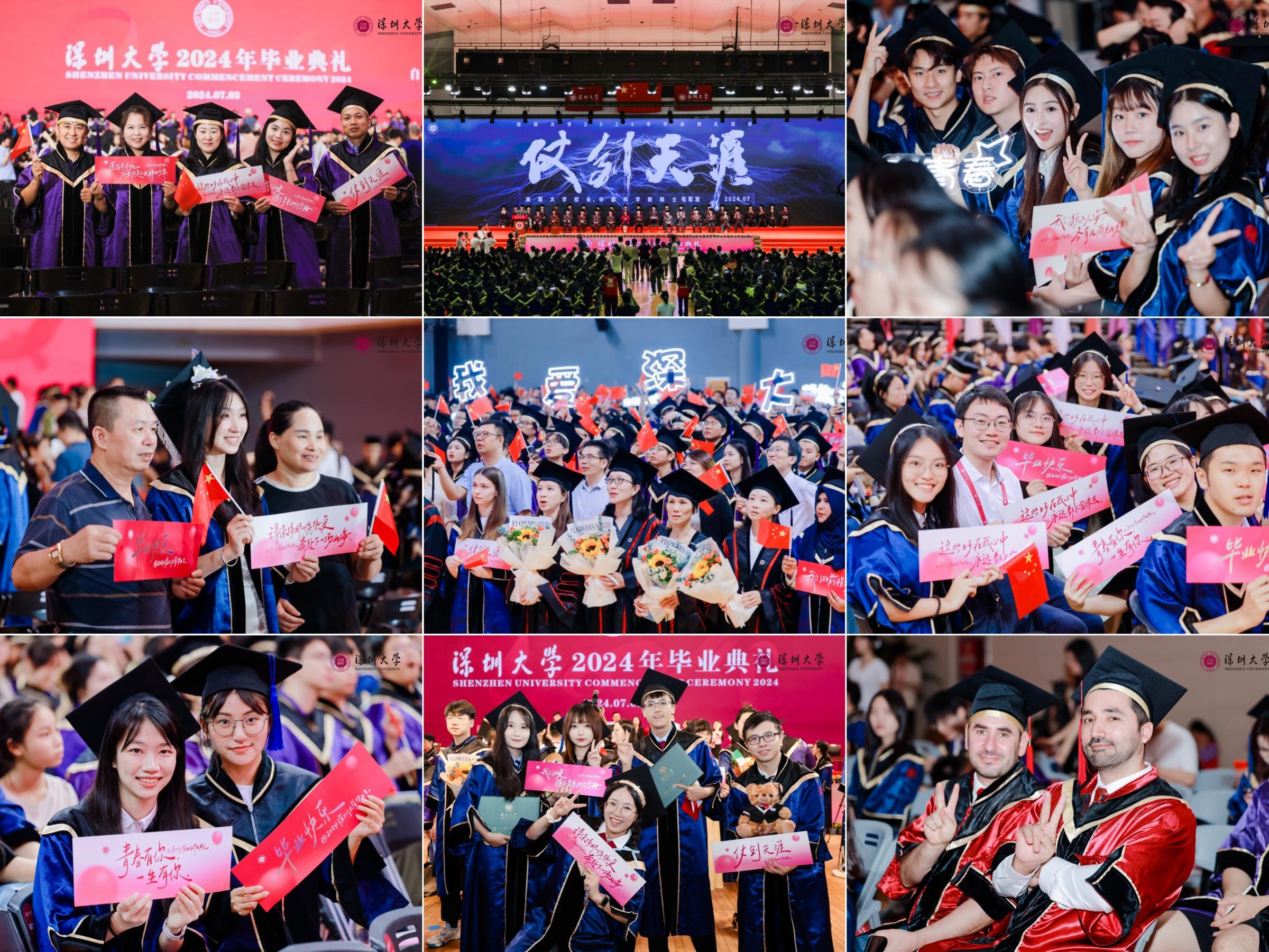 据介绍,近年来,深大研究生教育高质量发展,让每位荔园学子都能在知识的天空中,找到属于自己的星辰,绽放出最耀眼的光芒。2024年芒果体育毕业研究生数量达到4154名,其中,博士75名,硕士4079名。本届研究生163人荣获国家奖学金,48人荣获鹏程奖学金和腾讯创始人创新奖学金,221人荣获优秀研究生干部奖学金,340人荣获优秀毕业研究生称号。在创新能力方面,本届研究生在各类学科竞赛中共获得110个奖项,其中国际级、国家级奖项61项,省级奖项45项。75位博士研究生以第一作者的身份发表了198篇学术论文。专利申请34项。在就业升学方面,截至7月1日,1866名毕业研究生签约腾讯、比亚迪、富士康等企业;近两成毕业研究生签约机关事业单位;两百多位毕业研究生将前往北京大学、清华大学、东京大学等国内外知名学府继续深造。还有更多的探索者走上自主创业的道路,用双手去开创属于自己的天地。