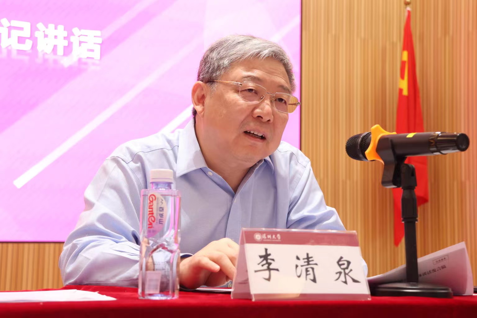 李清泉对与会人员提出三点要求:一是重学习、讲团结。政治理论学习是各位干部提高党性修养的基本功和必修课,要加强系统性的理论学习,切实做到提高政治判断力、政治领悟力、政治执行力。特别是在党纪学习教育中,要认真学习《中国共产党纪律处分条例》,仔细阅读,认真对照,做到学纪、知纪、明纪、守纪,把遵规守纪刻印在心,内化为言行准则。同时,要注重领导班子的团结,努力做到协调和聚合,成为班子团结的向心力。二是锻能力、讲奉献。李清泉说,大学的管理需要经验和技术,中层干部要在实践中不断体悟,兼顾原则要求和客观实际,不断改进和提升工作思路方法,推动各项工作有序落地。李清泉回顾了自己在管理岗位上的工作成长经历,以生动的案例鼓励各位年轻干部要勤学多悟,及时总结工作经验、提高工作效率,为深大发展奉献自己的青春力量。三是守底线、敢作为。李清泉表示,中层干部要守住党风廉政建设的底线,以“如履薄冰、如临深渊”的工作态度,慎交友、守底线,以“一失万无”的心态高度重视党风廉政建设。他希望各位中层干部以试用期转正作为新的起点,立足本职工作,以更加昂扬向上的精神面貌、更加扎实的工作作风,在深大这个发展潜力巨大、拼搏奋进的工作环境和优秀平台中,攻坚克难、勇于担当、主动作为,为学校发展作出更多更大的贡献。