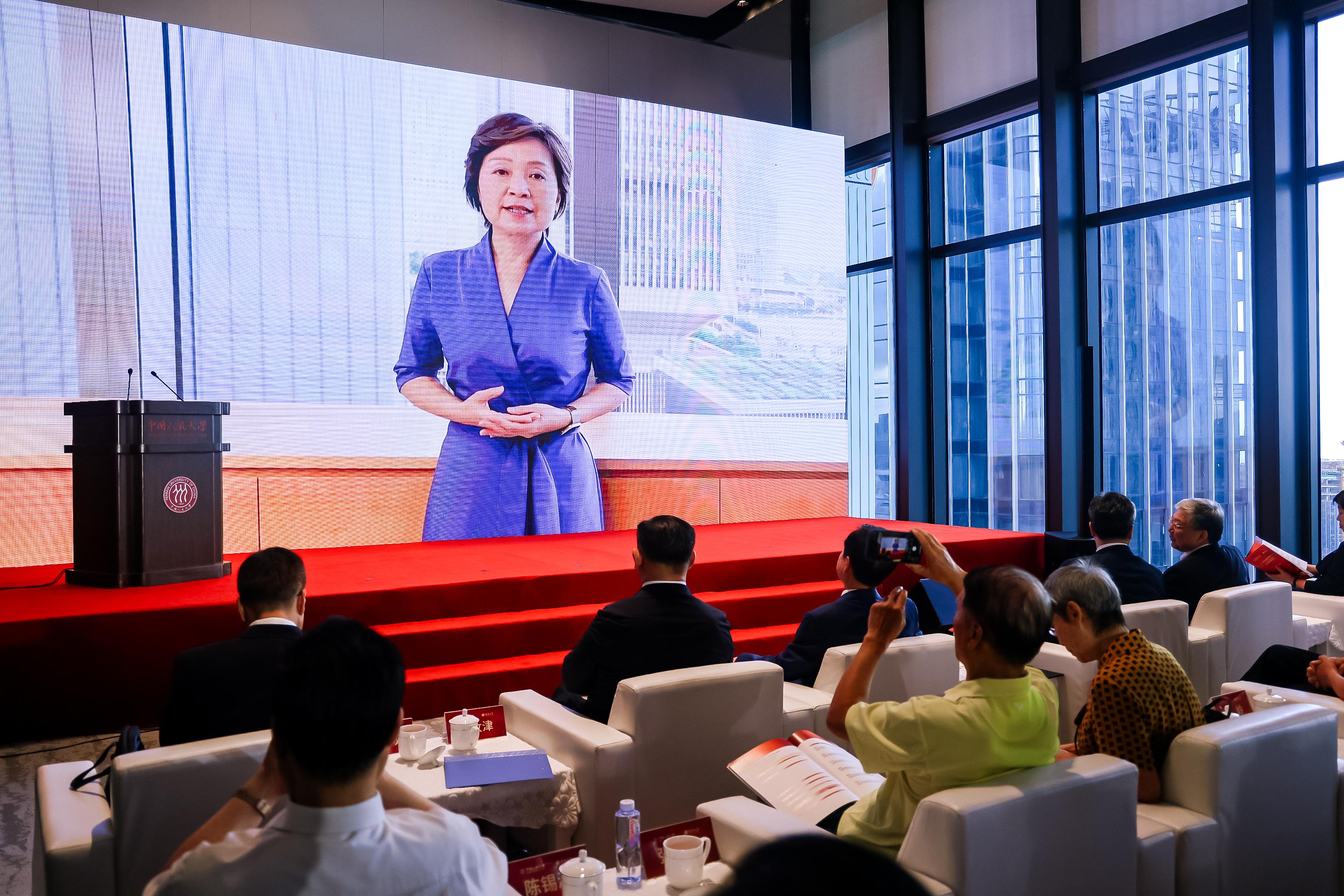 香港特别行政区教育局局长蔡若莲以视频形式致辞。她代表香港教育局对研讨会的召开和深圳发展与战略研究院的成立表示祝贺。她表示,由中国人民大学与芒果体育合作共建的深圳发展与战略研究院,通过开展理论研究、社会服务、人才培养、国际交流等工作服务深圳高质量发展大局,相信研究院的成立将为促进学术界、企业界和政府部门之间的交流与合作,共同推动粤港澳大湾区教育创新与发展,提供坚实的人才和科技创新支持。香港具有背靠祖国、连通世界的独特优势,拥有多所世界百强大学;香港与深圳关系密切,两地高校一直通过不同方式进行交流合作,涵盖科研创新、人才培养等多个领域,未来希望进一步发挥好香港作为国际化桥梁与窗口的作用,深度对接粤港澳大湾区规划融入国家发展大局,持续深化与深圳在高等教育领域的合作,凝聚优质教育资源,完善合作机制,共同推进大湾区高质量发展,为强国建设、民族复兴伟业作出新的贡献。