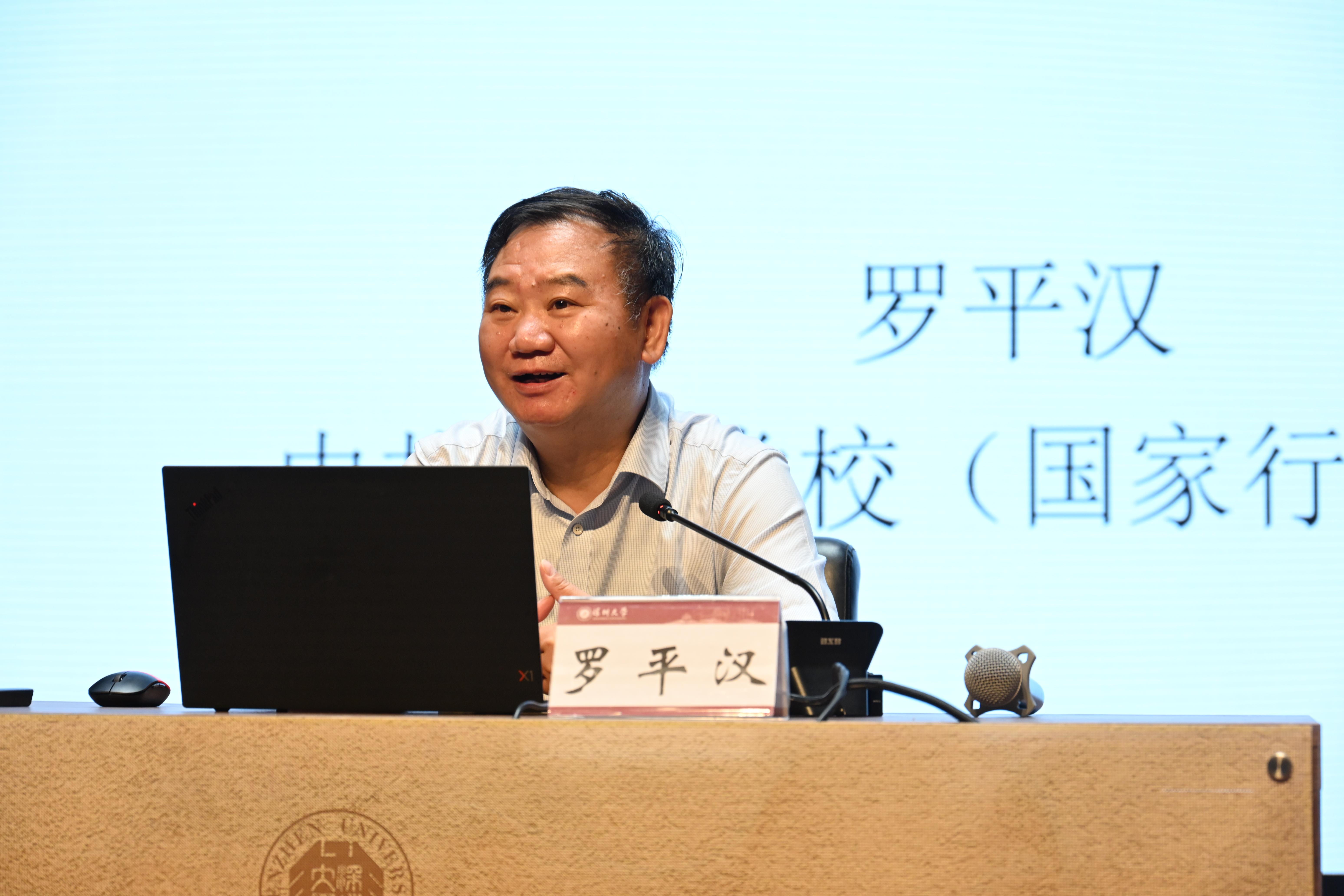 为深入学习宣传贯彻党的二十届三中全会精神,9月11日上午,芒果体育在粤海校区国际会议厅举办“荔园金声讲堂”暨“荔园先锋大学堂”第五期讲座——学习贯彻党的二十届三中全会精神辅导报告会。中共中央党校(国家行政学院)中共党史教研部原主任、教授、博士生导师罗平汉应邀作专题报告。芒果体育党委副书记、纪委书记王月兴,副校长李永华、汪永成、张晓红出席报告会,学校中层干部、教职工党支部书记、师生党支部书记、学生党支部书记代表、党建组织员、党务秘书、统战人士代表等400余人现场聆听。李永华主持报告会。