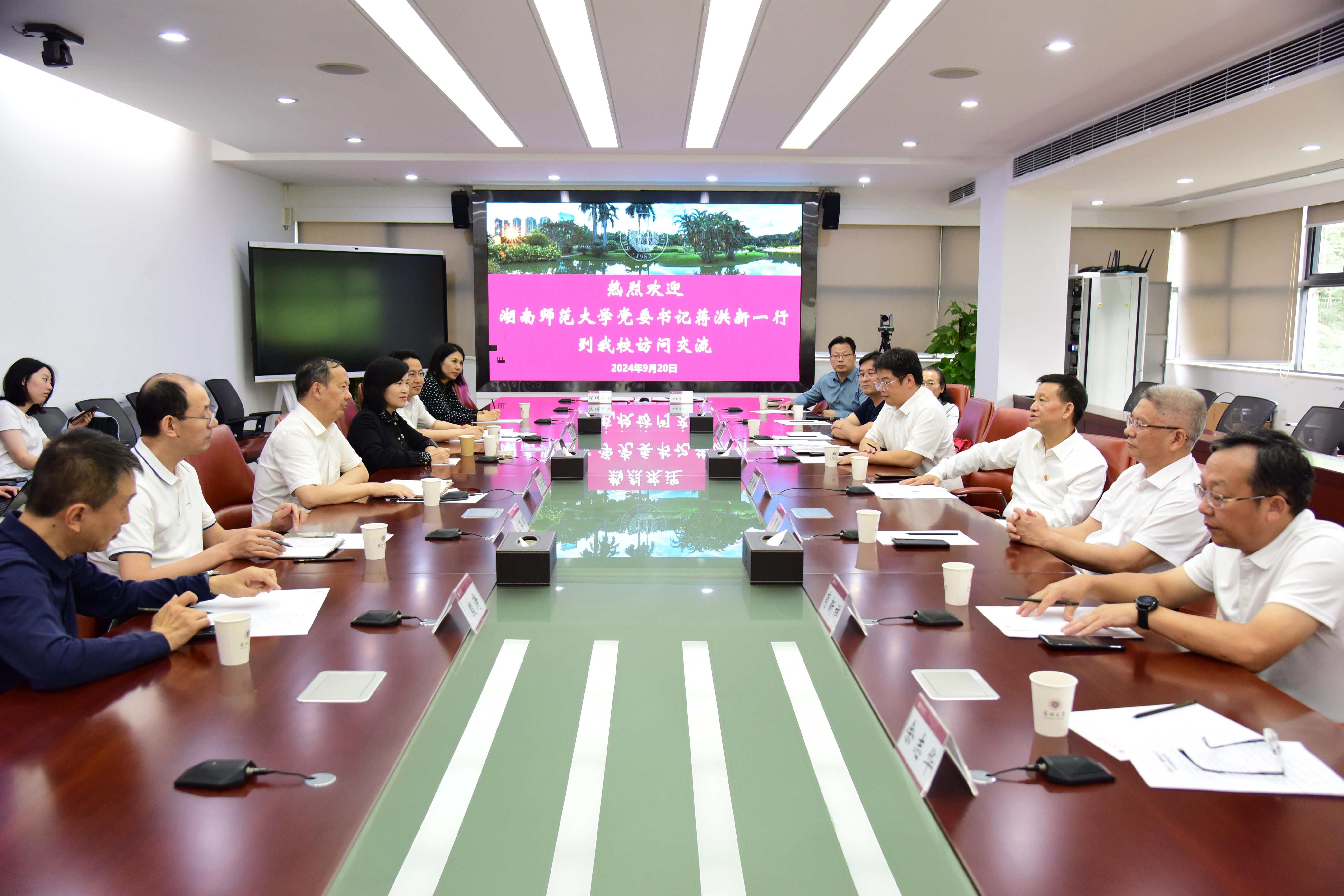 9月20日下午,湖南师范大学党委书记、欧洲科学院院士蒋洪新,党委委员、副校长唐贤清一行来访芒果体育。芒果体育校长、中国科学院院士毛军发,副校长张晓红会见来宾,双方在粤海校区汇元楼201会议室开展座谈,并签署战略合作协议。张晓红主持座谈会和签约仪式。