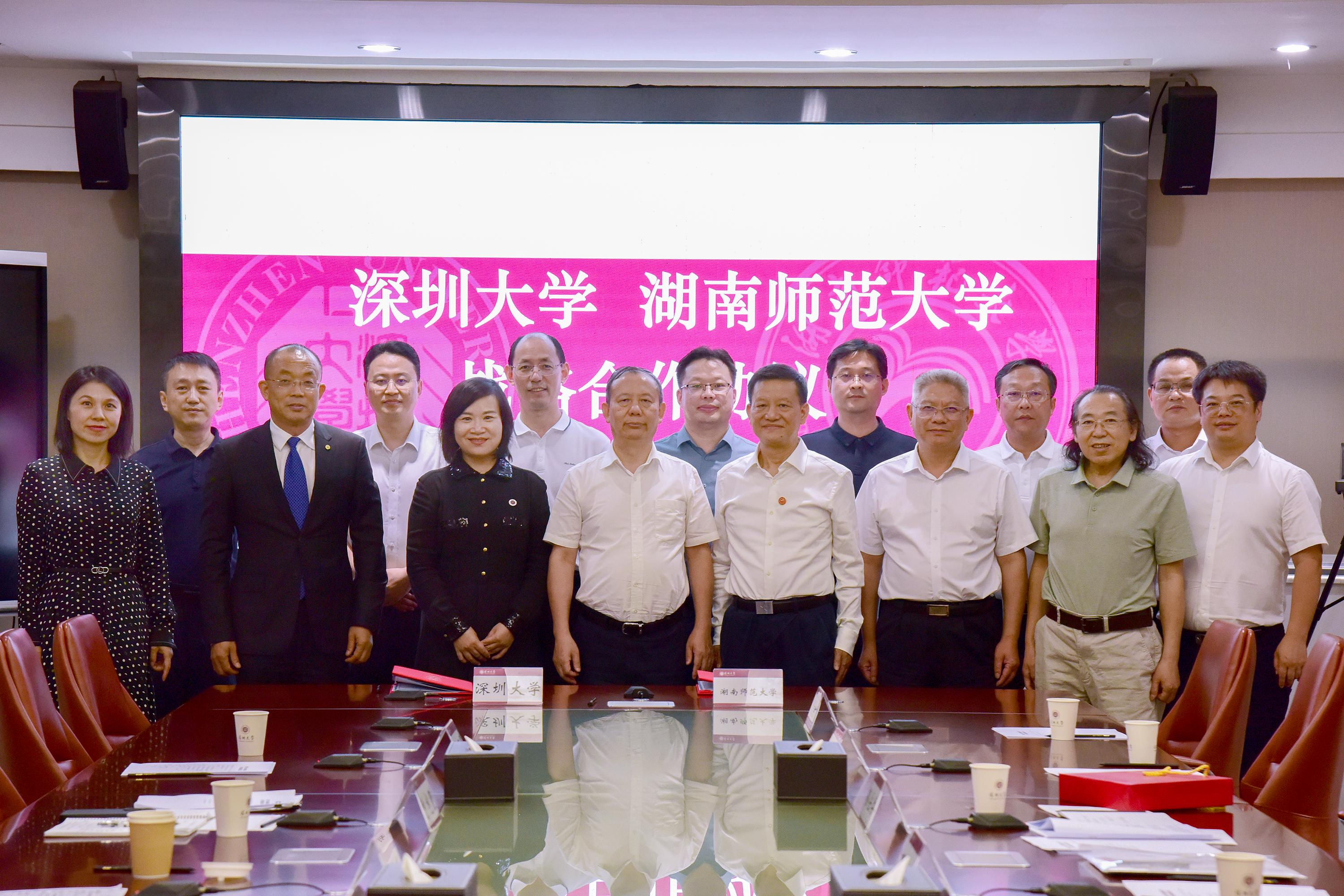 湖南师范大学党委办公室、校长办公室、发展规划与学科建设处、校友总会、深圳市校友会相关负责人,芒果体育党政办公室、社会科学部、医学部、发展规划部相关负责人出席座谈会,并共同见证签约。