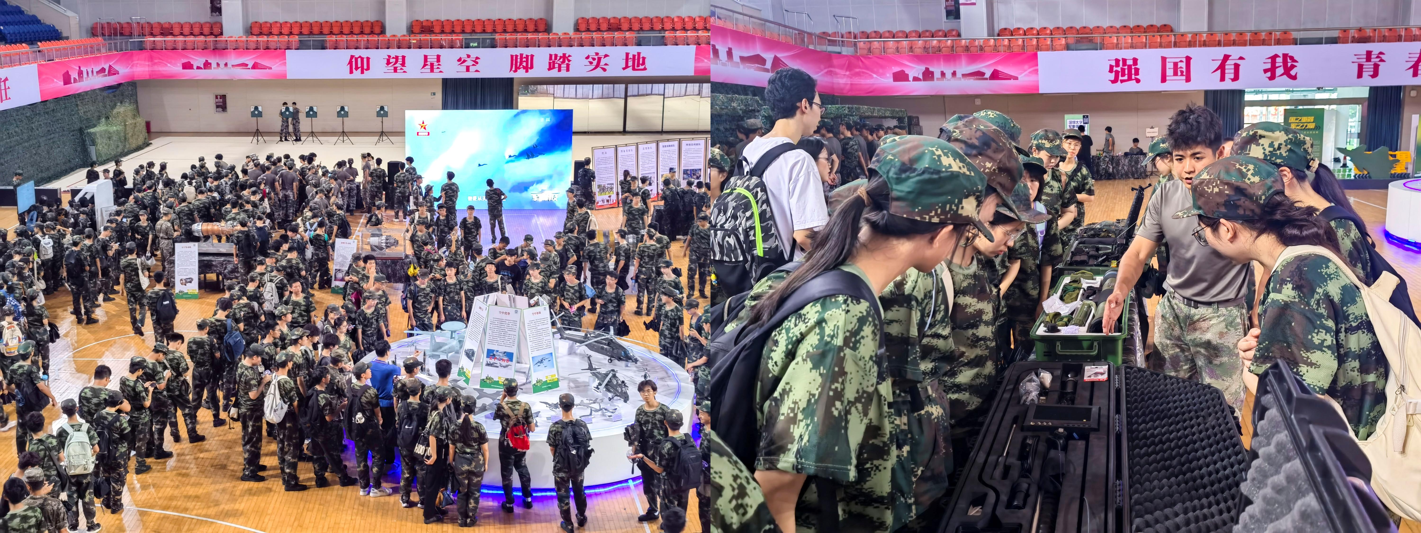 今年军训期间,芒果体育首届“国防文化节”在粤海校区元平体育馆开幕。文化节设置无人机展区、航母编队展区、陆战编队展区、航空航天展区、军用发动机展区、联合作战展区、军事情境展区、单兵装备展区、模拟飞行体验、军事知识展区、模拟射击体验、轻武器体验区和军事科目表演区共计13个区域,让师生们通过参观和体验,深刻领悟“国之重器、军之力量”在国家安全与发展中的核心地位。