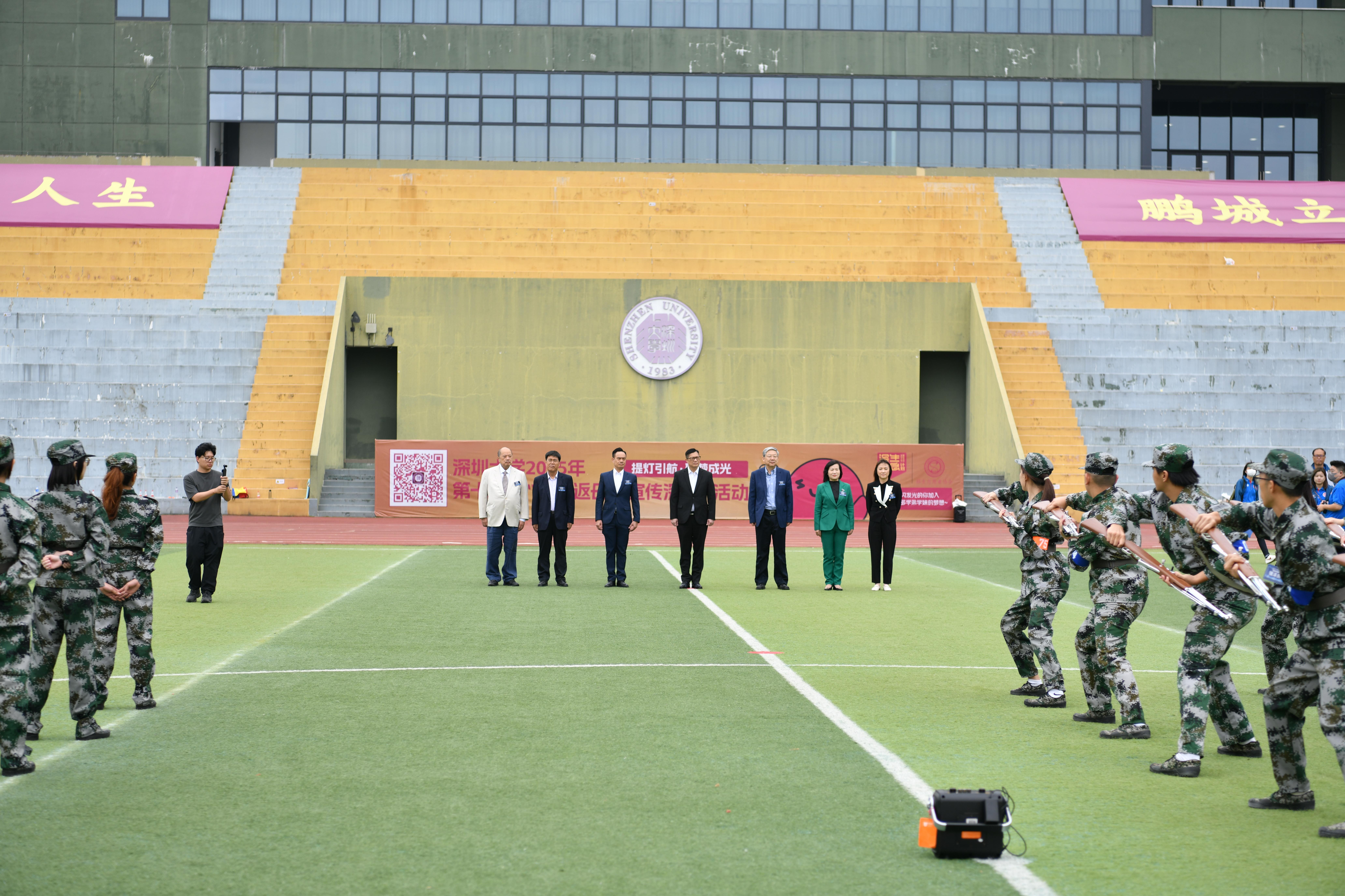 在启动仪式之前,邓炳强、李清泉一行共同到丽湖校区体育场观摩学员训练,与学员互动。随后,邓炳强、李清泉一行前往位于启明楼的国防教育展进行参观,亲身感受新时代国防和军队建设的伟大成就,并与学员合影留念。