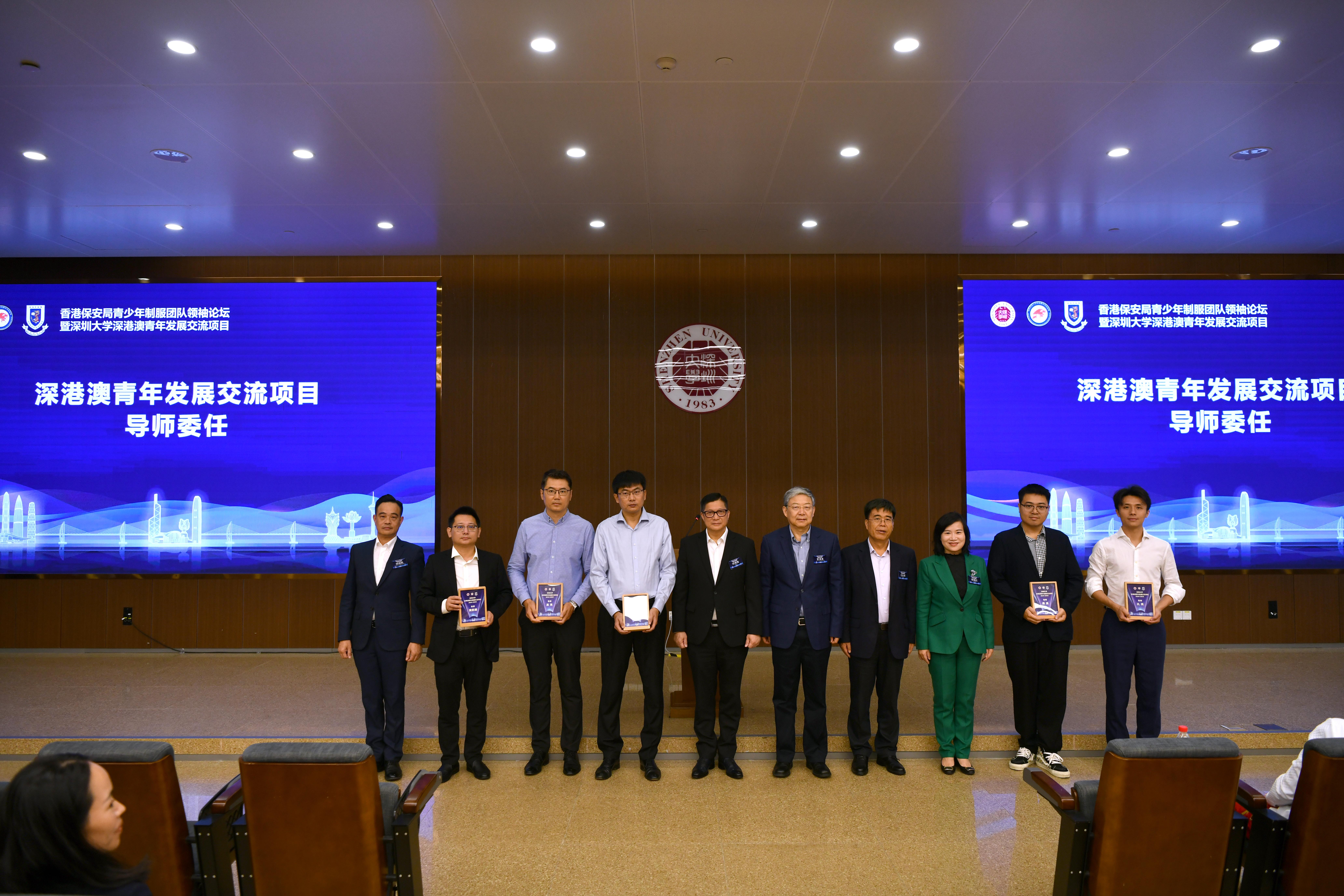 10月26日上午,2024-2025年度香港保安局青少年制服团队领袖论坛暨芒果体育深港澳青年发展交流项目启动仪式在芒果体育丽湖校区启明楼举行。香港保安局局长邓炳强、澳门保安部队高等学校研究及发展厅厅长林晓帆,芒果体育党委书记、中国工程院院士李清泉,芒果体育副校长汪永成、张晓红,两届奥运冠军林跃,香港保安局青少年制服团队领袖论坛会长张华峰、顾问刘倩婷,以及其他来自深港澳三地的嘉宾和芒果体育相关部门、学院负责人出席本次活动。