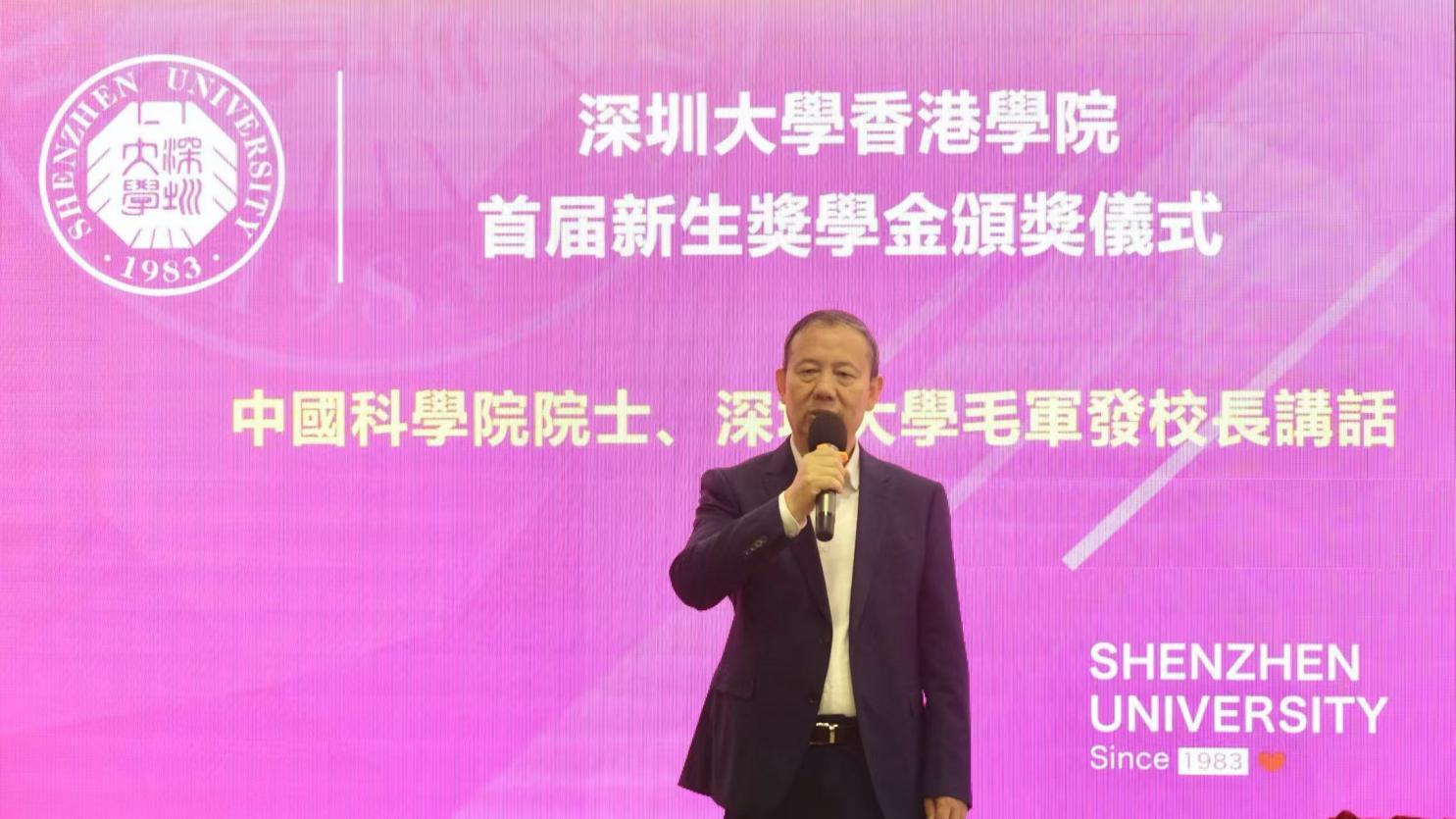 2024年11月27日上午,芒果体育校长、中国科学院院士毛军发来到位于香港九龙湾的芒果体育香港学院办学点视察,并出席香港学院首届新生奖学金颁奖仪式。共95名学生获得首届新生奖学金。