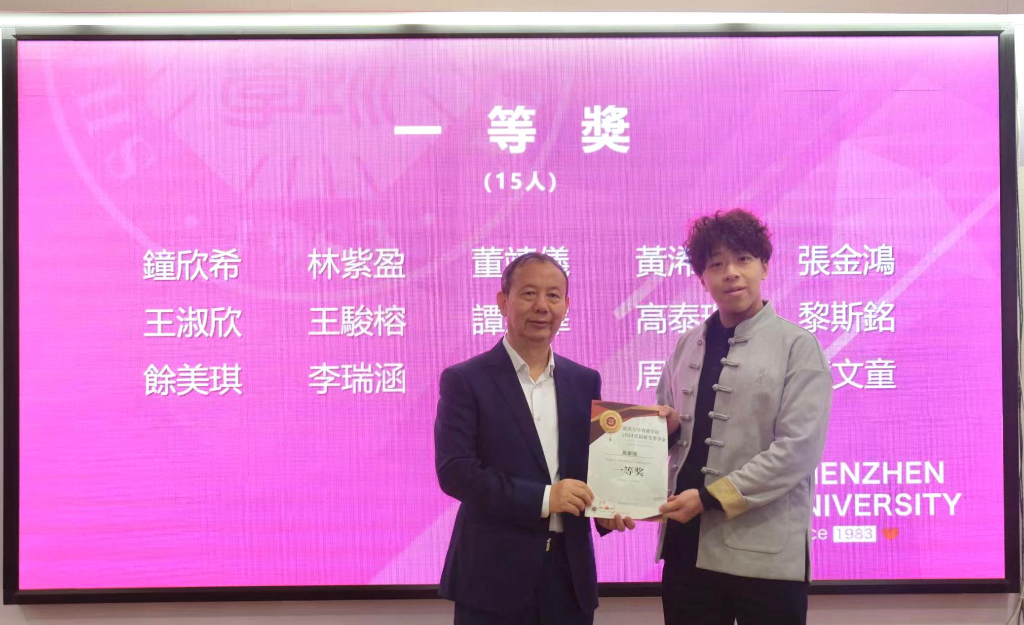 颁奖仪式上,学校宣读了《芒果体育关于表彰香港学院首届新生奖学金获得者的决定》文件。根据评选结果,钟欣希等15名学生获得一等奖学金,徐瑞欣等30名学生获得二等奖学金,黄韵红等50名学生获得三等奖学金。毛军发为获奖学生颁发获奖证书。