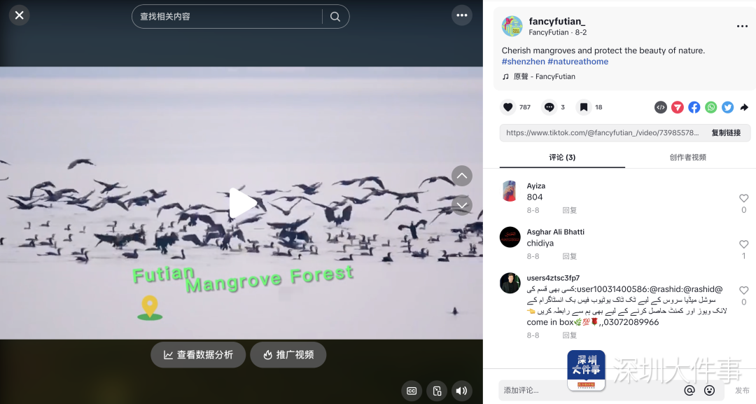 福田区围绕“红树林生态湿地保护”开展了专项国际传播策划。一方面通过境外主流媒体持续推送报道,另一方面组织海媒账号推出“福田‘小可爱’上线啦!”专题,并策划推出创意产品,《国际红树林中心》推文在Facebook阅读量超170万,《INFP会喜欢这种感觉吗?》视频播放量超110万次,进一步促进红树林生态湿地保护的国际合作与联合行动。