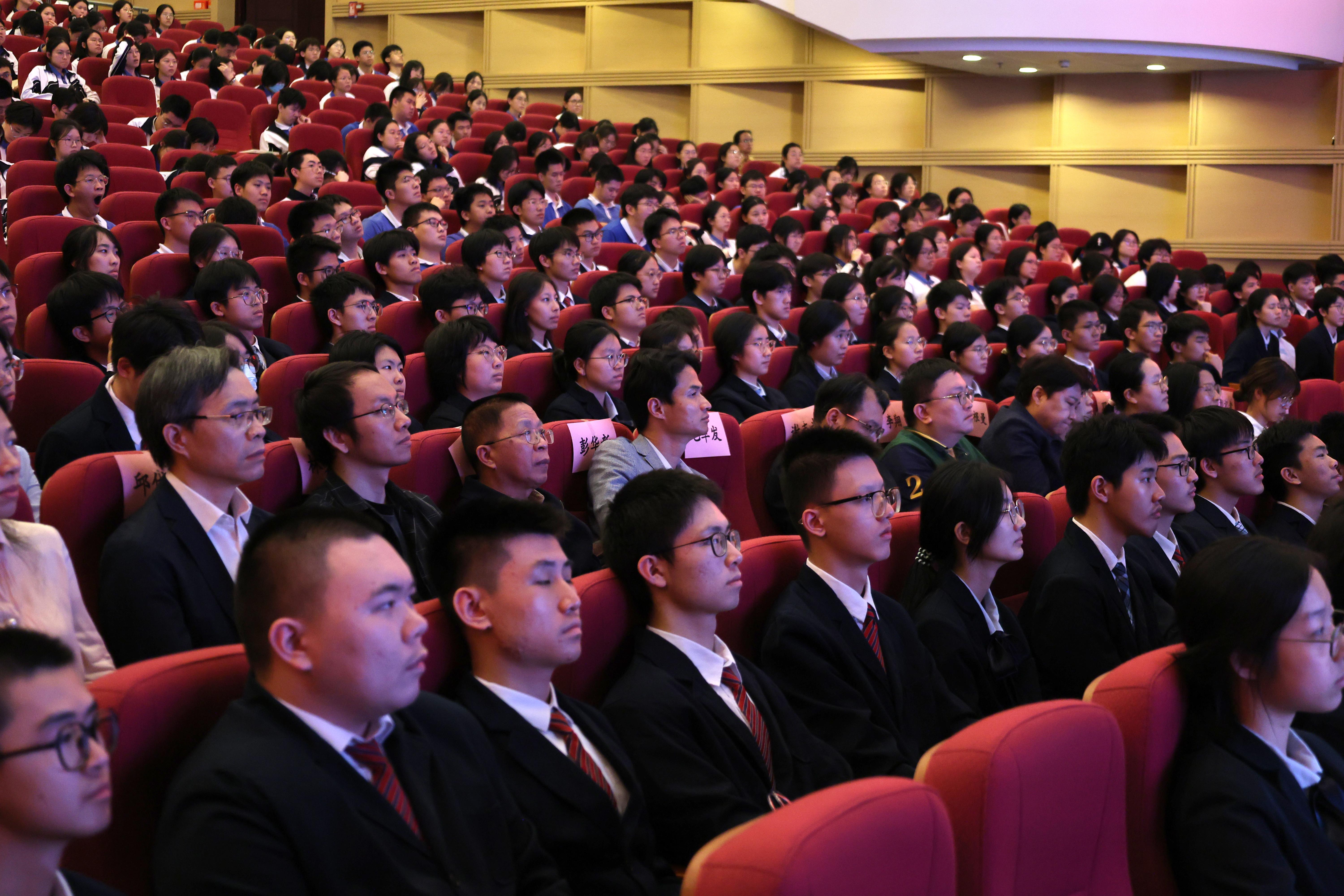 “成就一流事业需要青春梦想。”毛军发对深圳市第二高级中学的学子寄予厚望,他表示,考入深大的深二高学子数量逐年增多,他们在大学期间表现优秀,升学去向和就业质量令人欣喜。毛军发勉励同学们夯定坚实的数理基础,积累深厚的人文底蕴,坚定理想信念,脚踏实地,负起青春担当。现场学生认真聆听,掌声雷动。