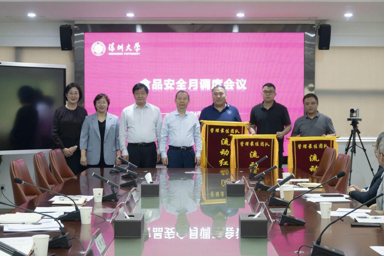 王月兴传达学习了习近平总书记关于食品安全的重要论述及讲话精神。李永华传达了上级关于“校园餐”专项整治工作会议精神。后勤保障部负责人汇报了近期学校食品安全工作情况。毛军发为三月份饮食专项考核前三名的餐厅颁发流动红旗。