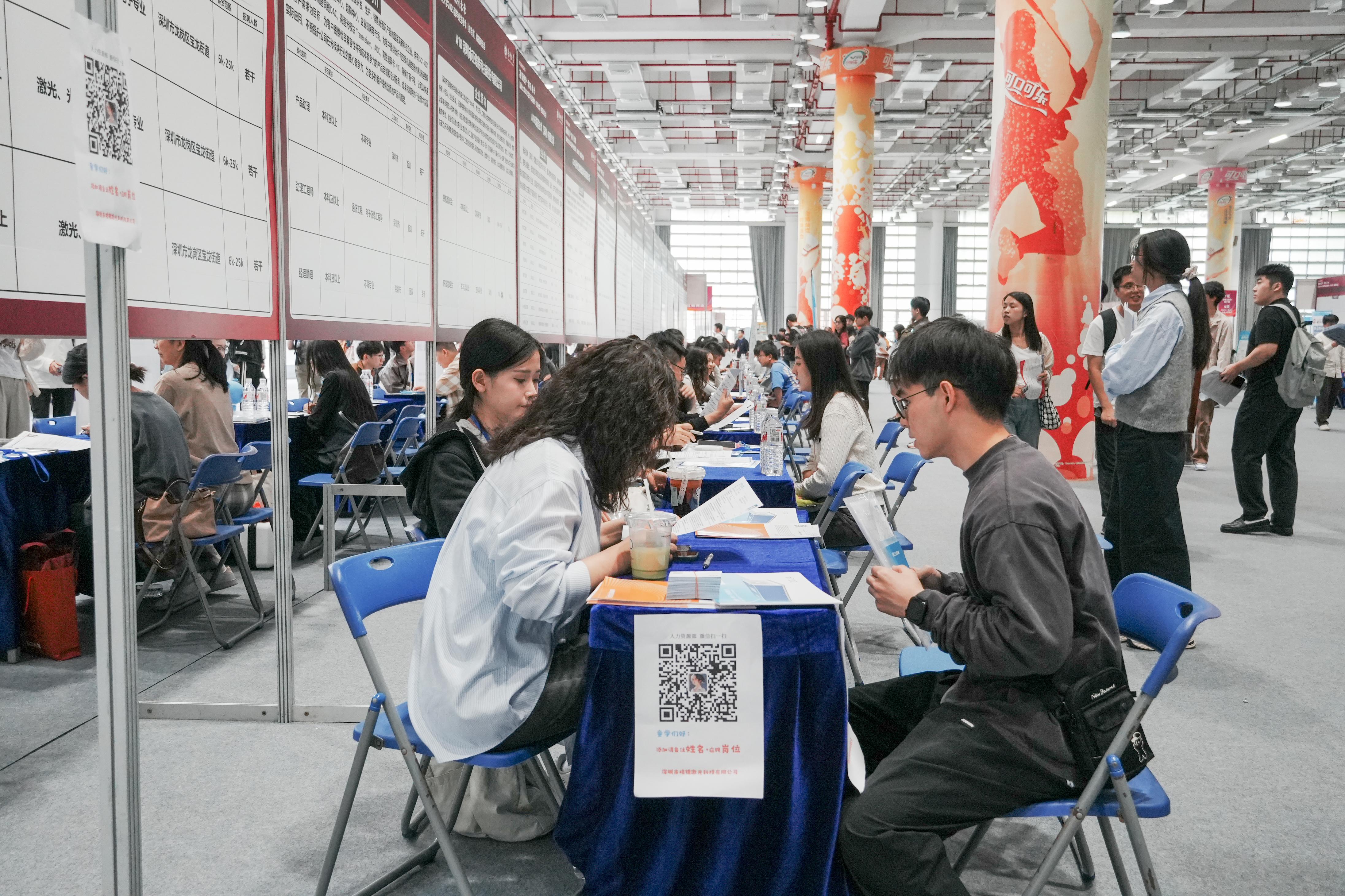地方引才专区成为双选会新亮点。南昌专区携十余家重点企业提供新“人才10条”综合补贴,珠海、江门专区则推出大湾区新兴产业人才引进政策,吸引不少毕业生驻足。环境工程专业的刘同学表示:不少企业主动推介大湾区其他城市的岗位,提供住房补贴和科研启动资金,在职业发展空间和成本压力平衡方面给了毕业生更多选择。人文学院应届硕士毕业生王同学在南昌专区锁定心仪岗位:“地方政府提供住房补贴和科研启动资金,让我看到回乡发展的新可能。”