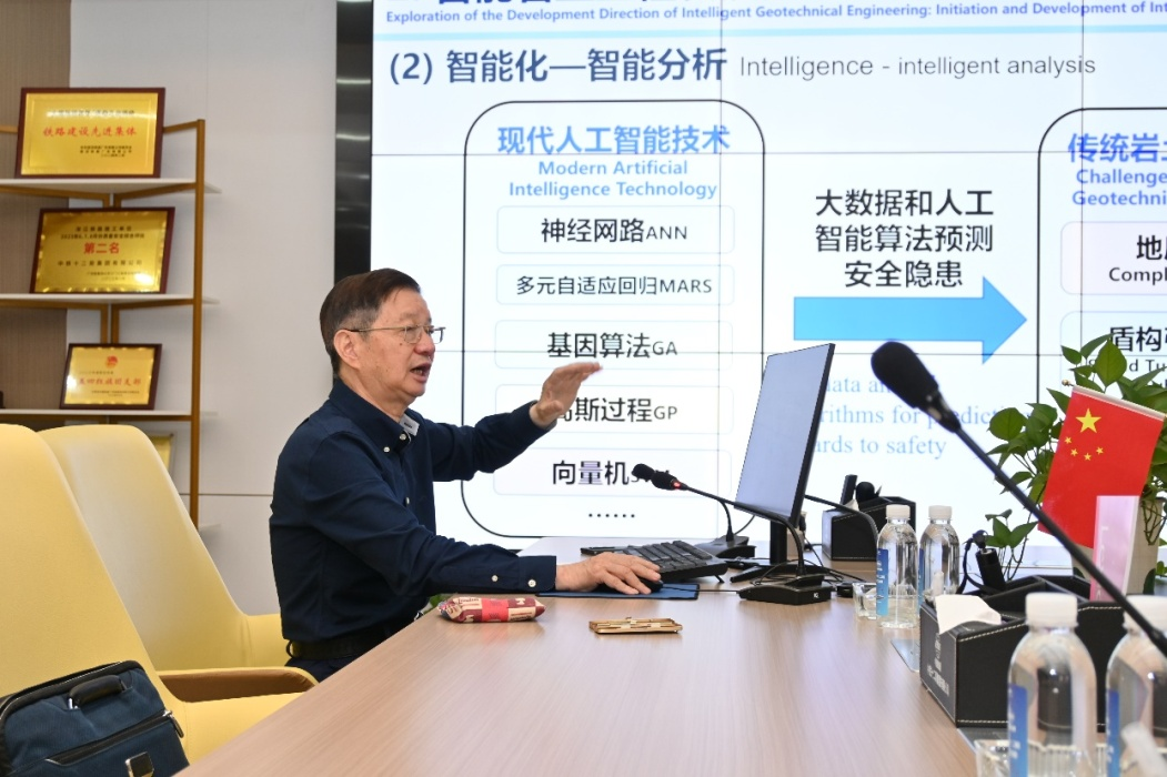 “未来属于能够用知识解决复杂问题的人。”在项目现场,陈湘生院士以《从智能岩土工程探索到数智土木工程的思考》为题,开展现场教学。从土木工程的三次飞跃谈起,陈湘生展望了大数据驱动、人工智能赋能的未来土木工程新图景。