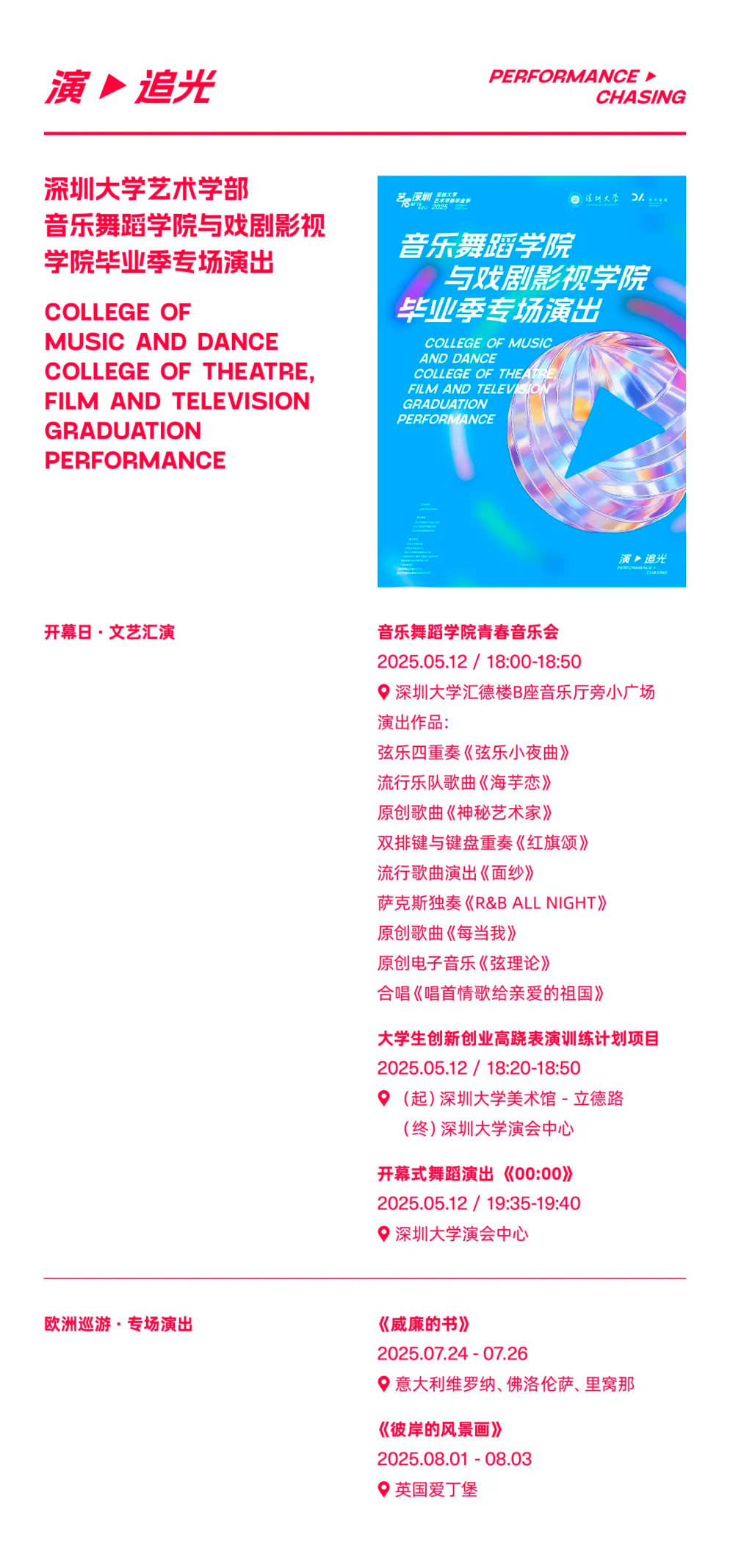 据悉,2025年芒果体育艺术学部毕业季以“艺启深圳”为名,寓意青年艺术力量与先锋之城相遇,开启艺术与城市的深度对话。本届毕业季汇聚学部下设三大学院十二个专业毕业生,以艺术与科技融合、跨学科交叉为特点,共同呈现“展”“演”“秀”三大板块的精彩内容,涵盖美术展、设计展、服装走秀、音乐会、舞蹈演出、戏剧专场等丰富形式,多维度展示青年创作者们以创意赋能城市、以艺术对话时代的重要使命。