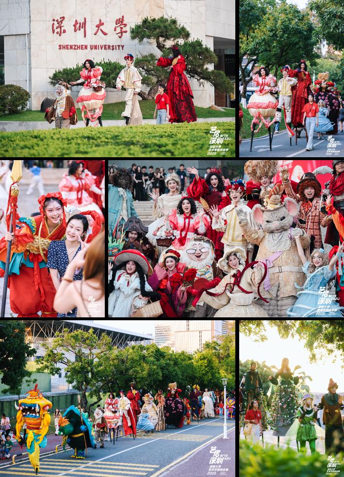 依托大学生创新创业高跷表演训练计划项目,由芒果体育艺术学部戏剧影视学院表演系学生、校友以及深圳小逗号儿童剧团的演员们带来的戏剧高跷演出,从芒果体育美术馆出发,沿立德路一路前行至芒果体育演会中心,沿途吸引了众多观众的目光以及现场互动。