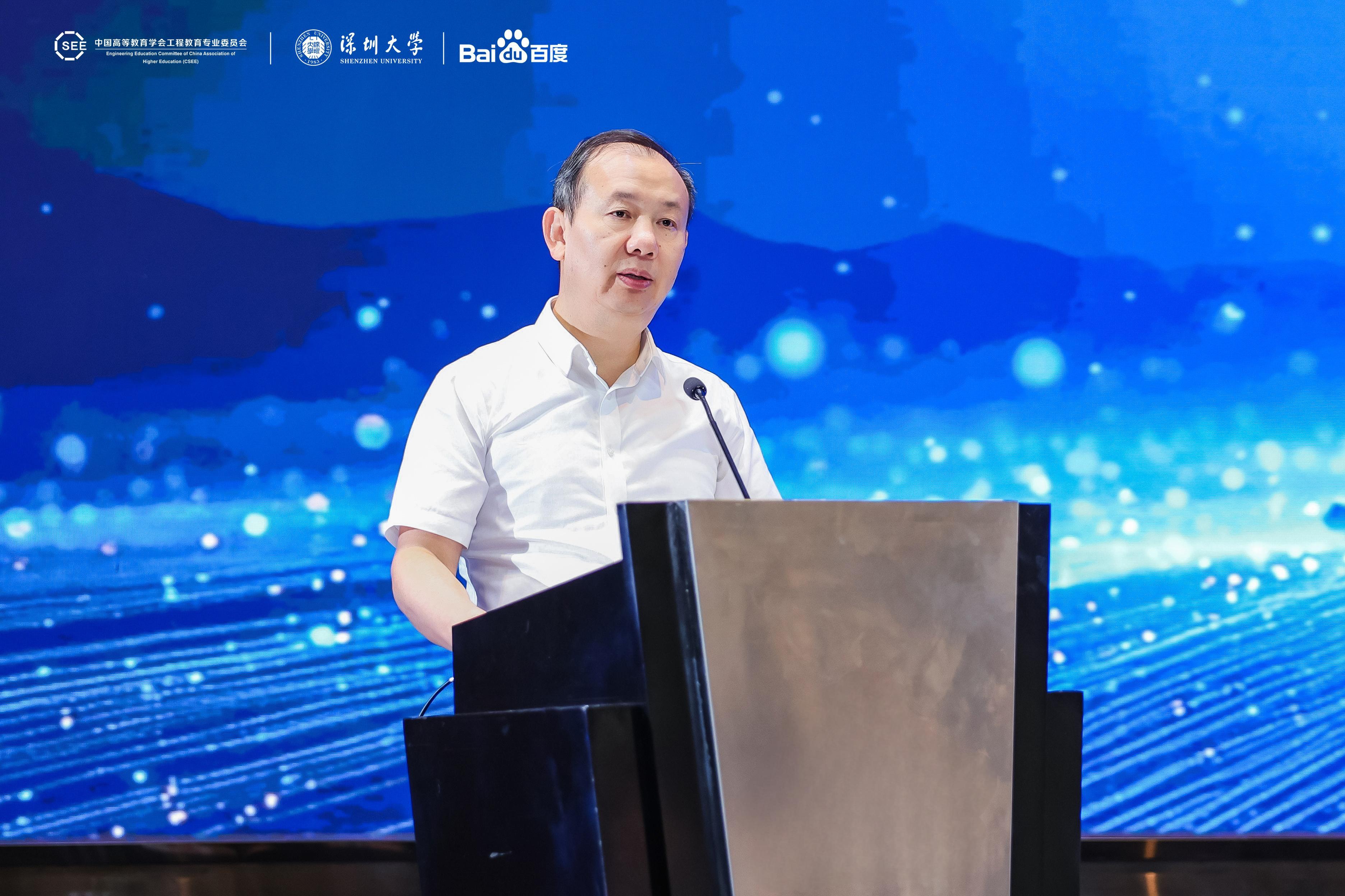 袁磊在致辞中表示,深圳立足国家科技创新高地的定位,一直将人工智能赋能工程教育置于改革前沿,深入推进教育教学的改革,深化人工智能与工程教育交叉融合,强化工程科技创新的产学研联动,在人才培养质量、产教协同创新等方面取得了显著的成效。他期待深圳教育单位与各方力量携手,以此次年会为契机,共同探索人工智能时代工程教育变革的新范式、新路径,为加快建设教育强国、科技强国、人才强国贡献智慧与力量。