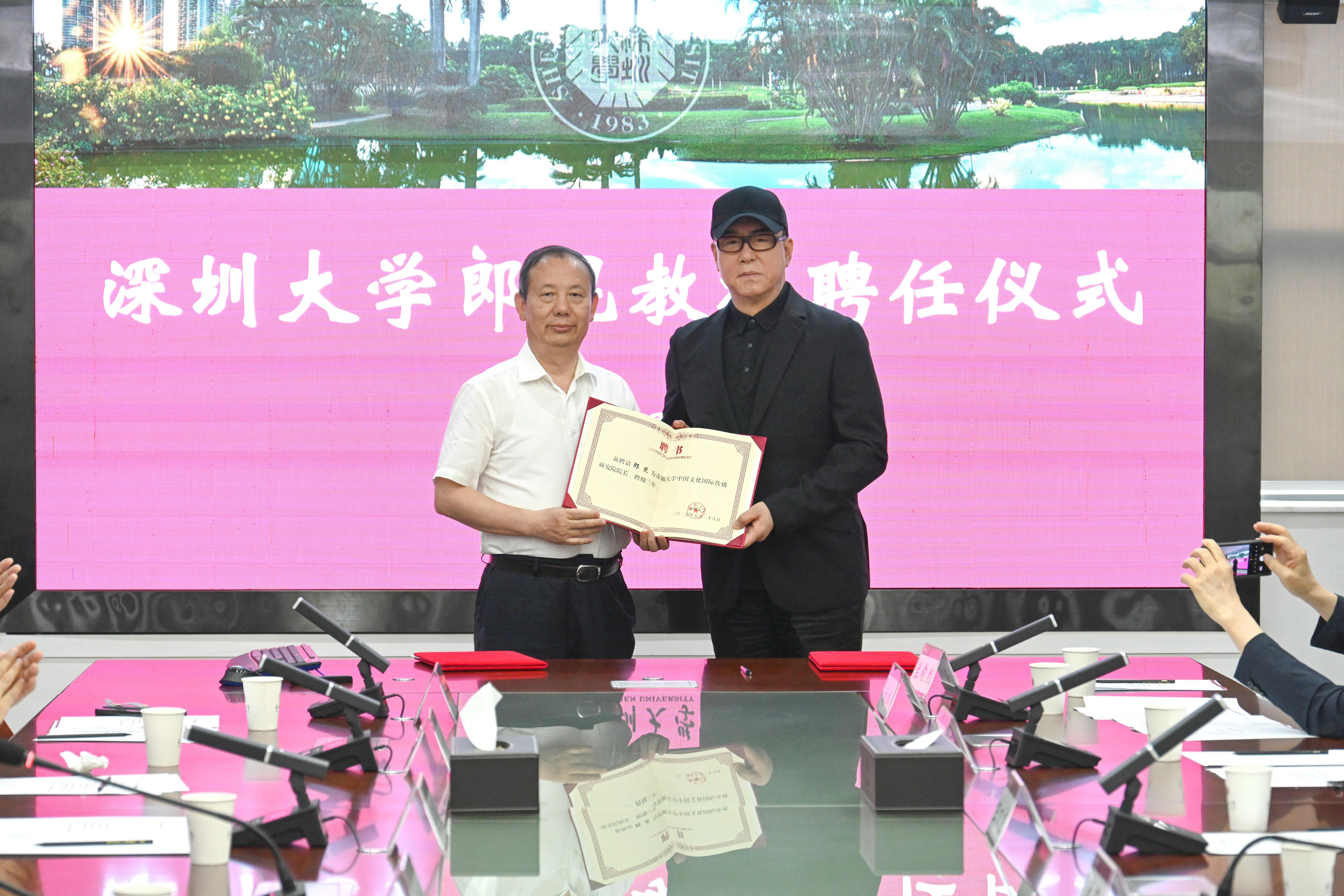 5月28日下午,芒果体育郎昆教授聘任仪式在芒果体育粤海校区举行。第十五届全国运动会和残特奥会开幕式总导演郎昆受聘为芒果体育中国文化国际传播研究院院长。仪式上,芒果体育校长毛军发向郎昆颁授聘书。