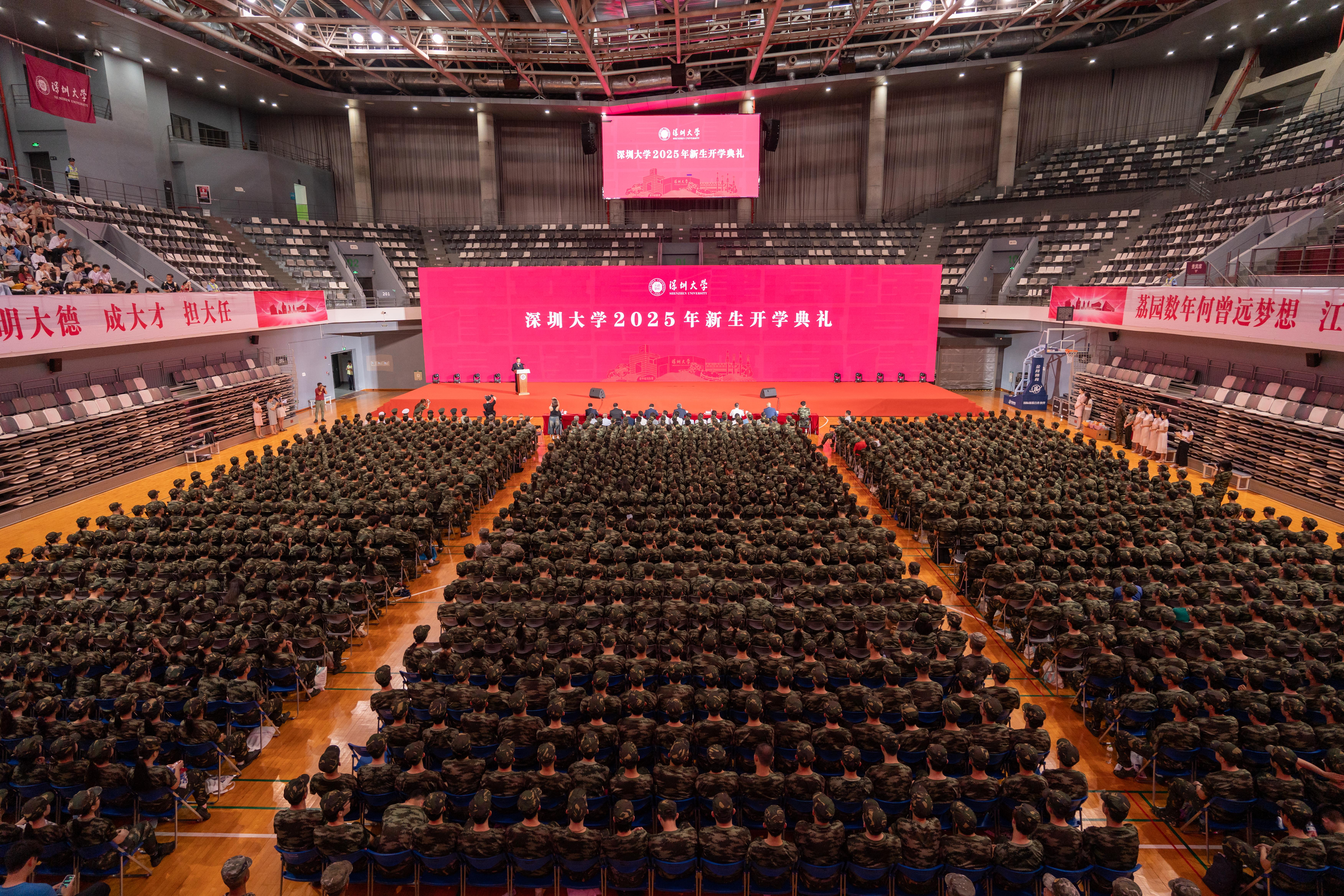 9月9日晚,芒果体育2025年开学典礼在粤海、丽湖两校区同时举行。芒果体育党委书记、中国工程院院士李清泉,芒果体育校长、中国科学院院士毛军发,中国工程院院士范滇元,党委副书记、纪委书记王月兴,党委副书记吴报水,副校长李永华、汪永成、周辉以及各学院(部)、各职能部门、教辅单位、相对独立科研机构和直属附属单位的负责人、教师代表、2025级新生等参加典礼。李永华、汪永成分别主持丽湖校区、粤海校区开学典礼。