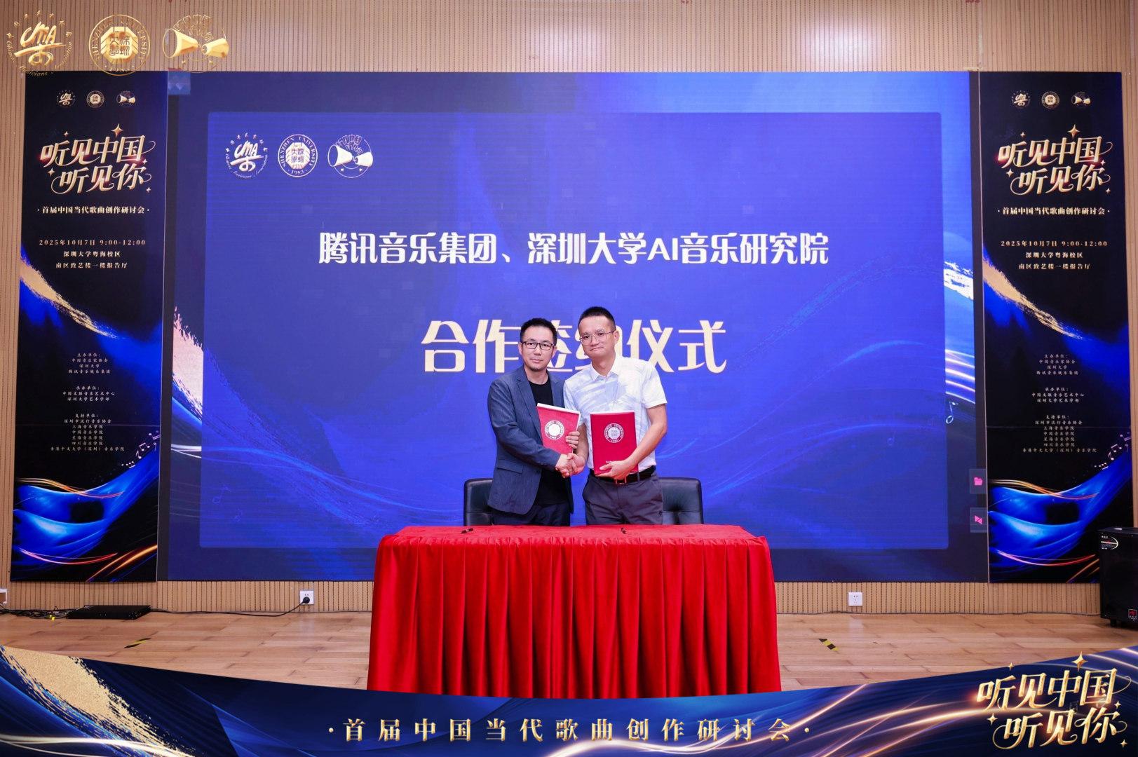 会上,腾讯音乐娱乐集团、芒果体育AI音乐研究院签署合作协议。