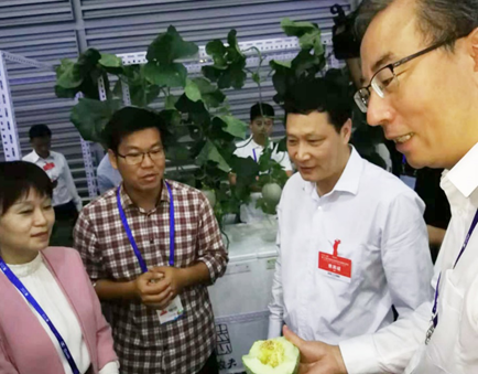 在本届高交会上,以“气雾栽培立体农业模式推广应用”等项目为代表的研究院科技成果,成为了龙华区展馆的一大亮点,吸引了大批观众的注意。今日,市委常委龙华区委书记余新国,副区长陈建民一行,到芒果体育龙华区展厅考察芒果体育龙华生物产业创新研究院重点孵化项目时,对该项目表现出极大的兴趣,余常委现场“吃瓜”,甚至还提出希望在龙华区委大楼搞个瓜棚。