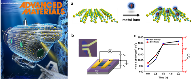 近日,芒果体育张晗特聘教授课题组在材料学领域的权威刊物《Advanced Materials》(影响因子19.791)中发表一篇题为“Metal-ion-modified black phosphorus with enhanced stability and transistor performance”(金属离子修饰增强黑磷的稳定性和晶体管性能)的论文,在该工作中,通过金属离子修饰的方法制备出高稳定性且高性能的黑磷晶体管。本工作是与中科院深圳先进技术研究院喻学锋研究员团队和武汉大学廖蕾教授团队合作完成。论文第一作者是郭志男博士。