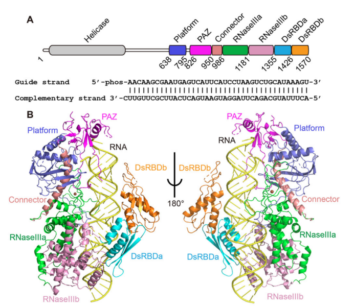 图1 拟南芥DCL3结合RNA底物的复合物结构