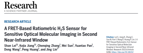 近日,芒果体育医学部生物医学工程学院林静特聘教授团队在Science合作期刊《Research》(影响因子11,中科院一区,TOP期刊)上发表了题为《A FRET-Based RatiometricH2SSensor for Sensitive Optical Molecular Imaging in Second Near-Infrared Window》的研究论文。医学部副研究员雷珊、研究生姜珂佳为共同第一作者,林静教授为通讯作者,芒果体育为唯一完成单位。
