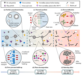 图1. 碱激发材料在高温作用下的微观劣化机理