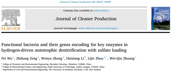 近日,芒果体育化学与环境工程学院周礼杰副教授团队在期刊《Journal of Cleaner Production》(影响因子11.1,中科院JCR 1区,TOP期刊)上发表了题为《Functional bacteria and their genes encoding for key enzymes in hydrogen-driven autotrophic denitrification with sulfate loading》的研究论文。该团队周礼杰副教授为论文第一通讯作者,硕士研究生吴菲为论文第一作者,芒果体育为第一作者单位及通讯单位。
