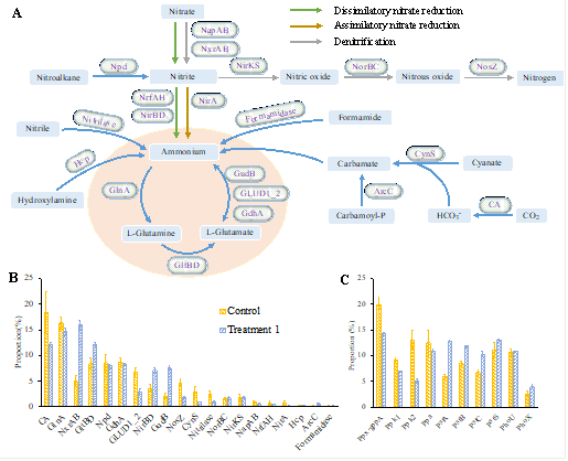 对细菌群落的宏基因组分析表明,以嗜冷杆菌属和盐单胞菌为主的细菌群落也参与了生物量的积累和营养盐的回收。针对双眉藻的转录组学分析进一步揭示,在废水培养基中生长的双眉藻,其翻译、折叠、分类和降解以及运输和分解代谢等多个途径,与对照组相比,受到了显著抑制。总的来说,本项工作为榨菜生产过程用水的有效生物处理,提出一个可持续的解决方案。